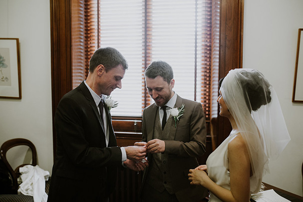 CREDITS Photos Elsa Campbell // Florist Mordialloc Florist // Ceremony The Old Treasury Building, VIC // Reception and catering Doyle’s Bridge Hotel, VIC // Cake A Little Bit Fancee // Engagement ring Natalie Marie Jewellery // Weddings bands Angus & Coote // Bridal Boutique and Veil Hannii // Shoes Novo // Accessories Lovisa // Suit and tie Jack London // Shirt Politix // Shoes Florsheim // Barber / grooming Drunken Barber.