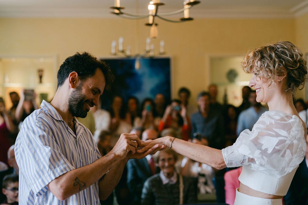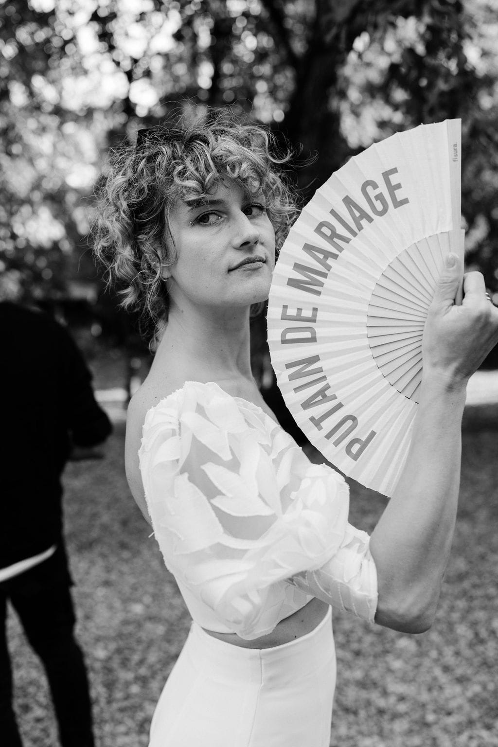 THE SUIT “I wanted my outfit to be composed of different pieces that I could wear again in my daily life, so my search was long. One day, I accompanied Marie to a dress fitting in a shop called the Petites jupes de prunes. Walking around the shop, I fell in love with the pants that I ended up wearing. Whilst Marie didn’t choose a dress from this shop, I found the first piece of my wedding outfit. For the shirt, I found a brand called Girafon Bleu. They have an urban style and an eco-friendly sustainable approach to their designs that I found matched well with my pants, and on the plus side, they use part of the benefits from the sales to help endangered giraffes.”
