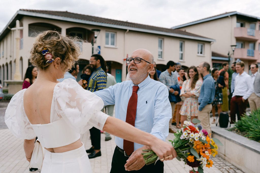 THE SUIT “I wanted my outfit to be composed of different pieces that I could wear again in my daily life, so my search was long. One day, I accompanied Marie to a dress fitting in a shop called the Petites jupes de prunes. Walking around the shop, I fell in love with the pants that I ended up wearing. Whilst Marie didn’t choose a dress from this shop, I found the first piece of my wedding outfit. For the shirt, I found a brand called Girafon Bleu. They have an urban style and an eco-friendly sustainable approach to their designs that I found matched well with my pants, and on the plus side, they use part of the benefits from the sales to help endangered giraffes.”