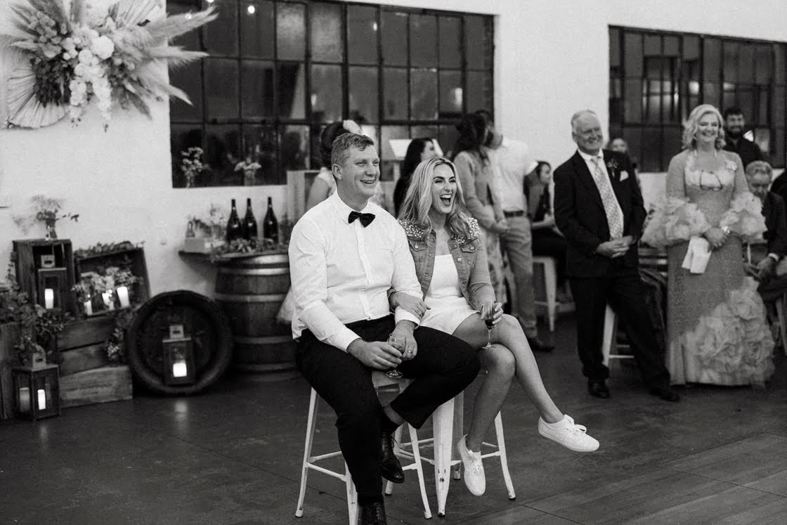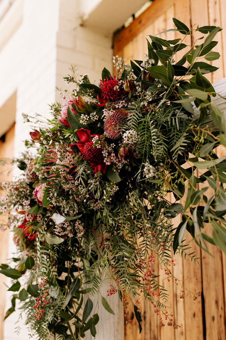 THE INSPO “We wanted a very relaxed, surprise wedding, with rustic decor with native florals. A large focus on wine (we popped a six-litre wine bottle as soon as we entered the reception and used it for a toast with all of our guests). We did not do a lot of the normal formalities such as a formal first dance or bouquet toss.”