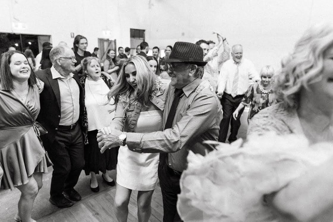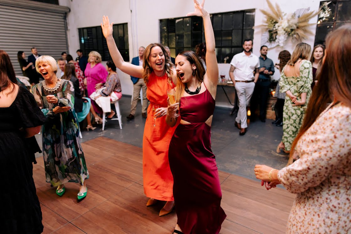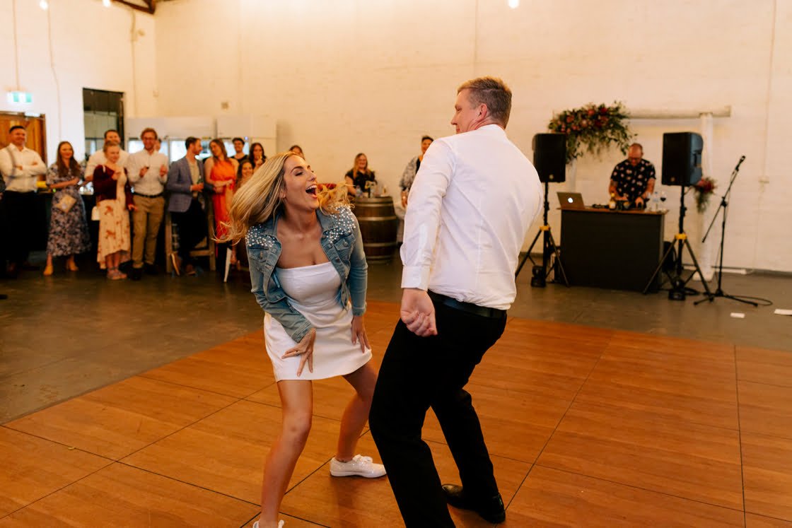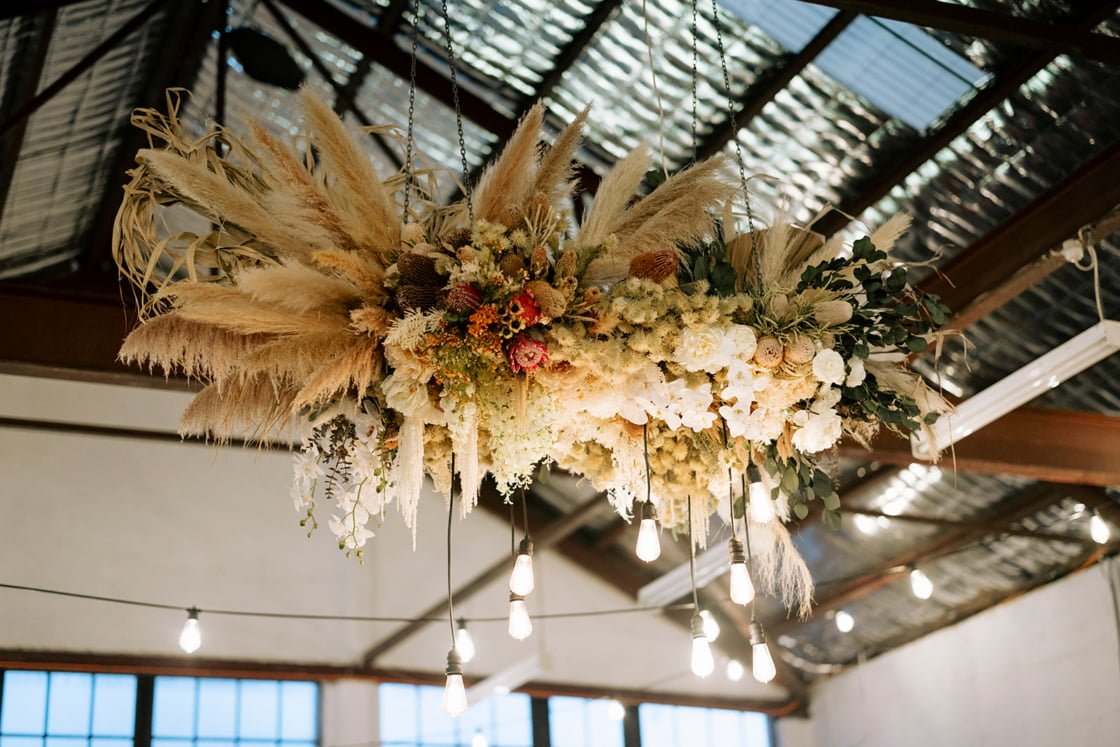 FAVE DEETS “We had 18 guests at our ceremony, the best idea ever for an anxious bride, I felt so comfortable and relaxed. The two metre hanging floral instalment looked incredible with hanging lights over our dance floor. We did a funny choreographed first dance to a song from the movie A Night at the Roxbury, a serious dance just was not us. Our family surprised us with a flash mob dance which was also amazing, how they pulled that off with guests from all over Australia I will never know. We included our dogs in the ceremony, they entered straight after me to their own song, they were gorgeous pups of honour.”