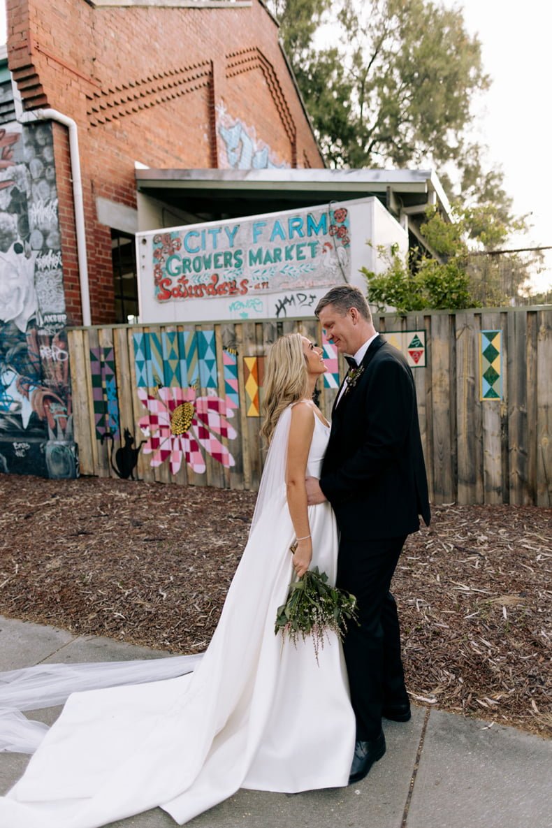 THE VENUEPerth City Farm was always where we wanted to get married. We knew we wanted a relaxed venue that we could make our own for our special day. The rustic vibes and stylised graffiti teamed with the luscious farm gardens created the most beautiful backdrop for our day. Rob collects wine, so it was important for us to be able to bring/choose our own wine list so this BYO venue was perfect.”