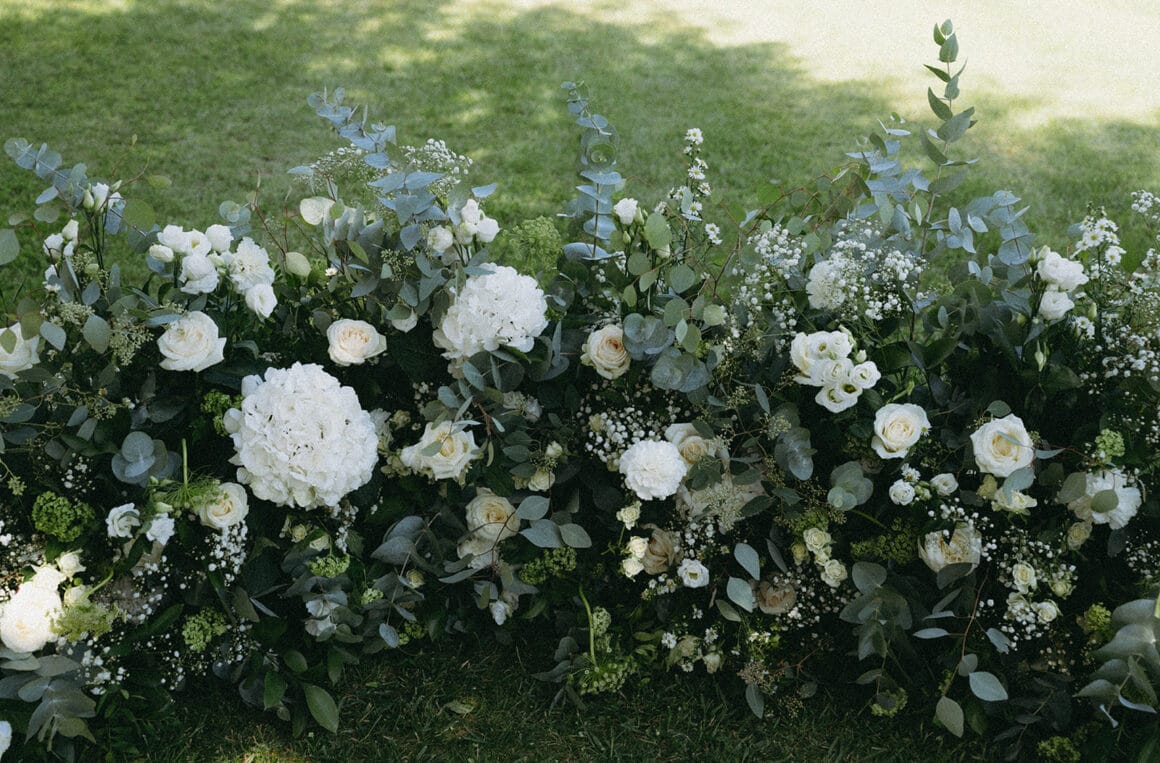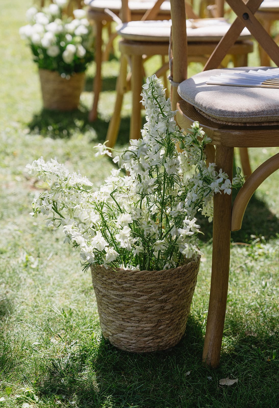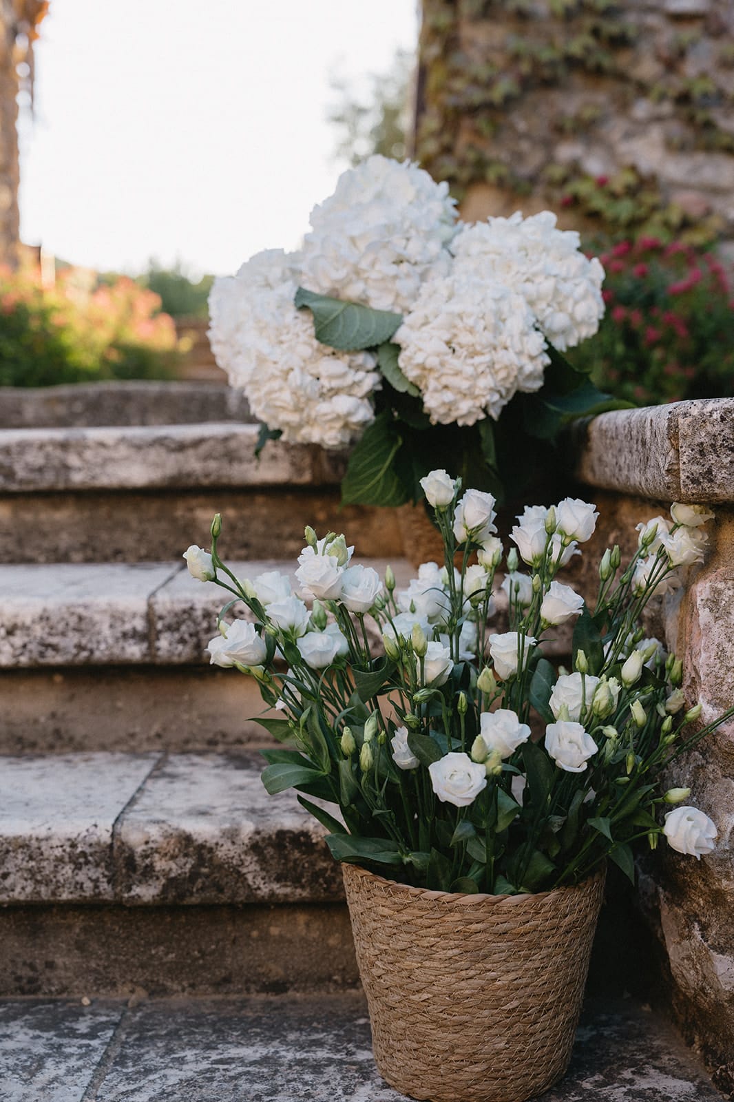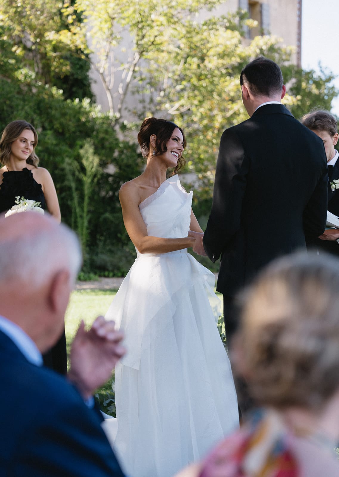 FAVE DETAILS “The flowers! From the baskets of hydrangeas to the eucalyptus and roses at the end of the aisle, everything was beautiful. The afternoon cocktails in the courtyard were a highlight for us. There was such a good atmosphere with everyone enjoying Aperol Spritzes and canapés in the sun, set against the beautiful backdrop of the house.”