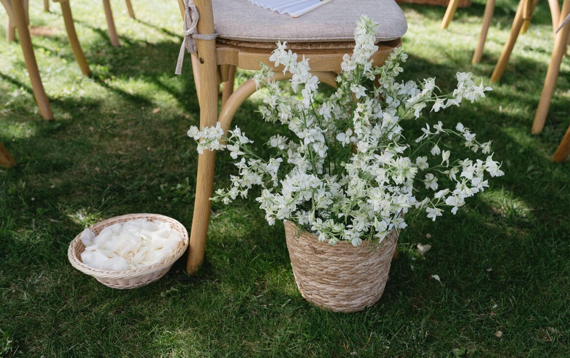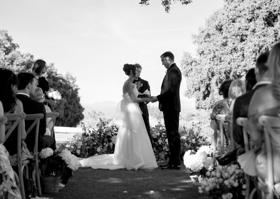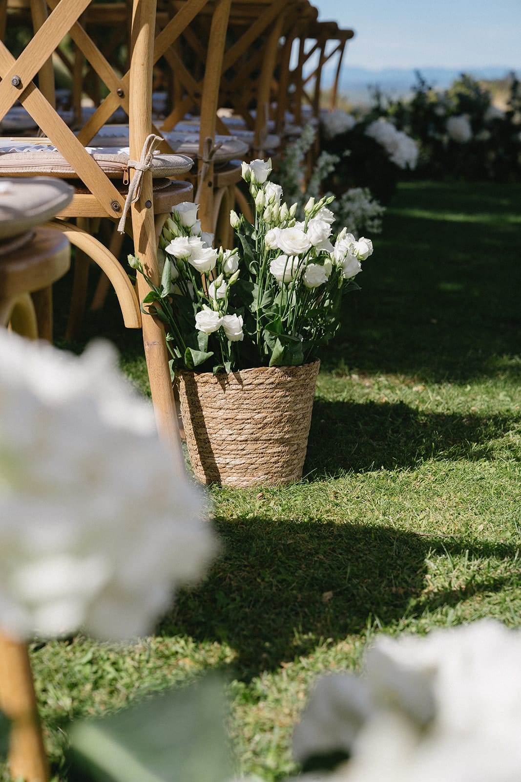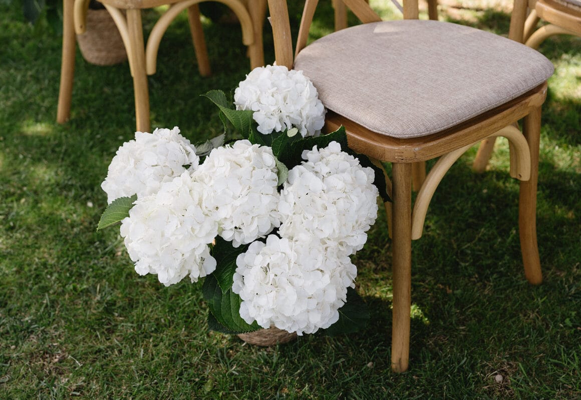 FAVE DETAILS “The flowers! From the baskets of hydrangeas to the eucalyptus and roses at the end of the aisle, everything was beautiful. The afternoon cocktails in the courtyard were a highlight for us. There was such a good atmosphere with everyone enjoying Aperol Spritzes and canapés in the sun, set against the beautiful backdrop of the house.”