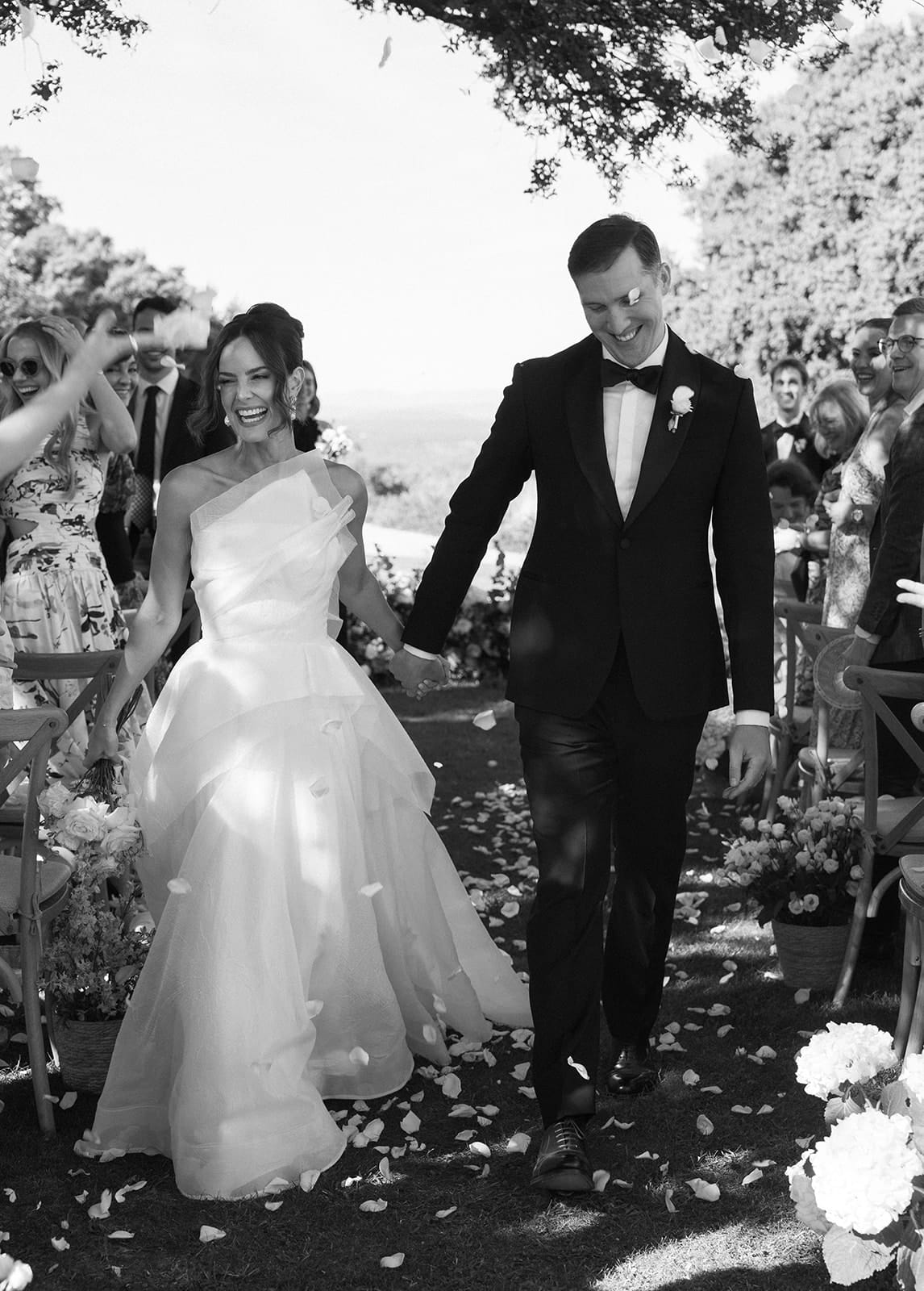 CONTRIBUTING VENDORS Photographer & Cinematographer Brontë McVeigh Event Planner & Stylist Manon Berne – The Blondy Concierge Florist L’essence Meme Stationery Sundae Creative Venue & Marquee Domaine De Puybernier via le Collectionist Catering & Cake Maker Chef Jeremy – Le Collectionist Entertainment, Lighting & Sound Hire 33 Tours DJ Celebrant Maddie (Family) & Tim (Friend) Rings Hogans Family Jewellers THE BRIDE (PROVENCE) Bridal Gown Designer Georgia Young Couture Second Dress Rachel Gilbert Shoes Loeffler Randall Accessories Alighieri Hair TBC Makeup Julia Barboni Fragrance/Perfume Prada Bridesmaid Dresses Acler Bridesmaid Shoes Alias Mae THE BRIDE (TOWN HALL) Bridal Set Reformation (Top) & Soza Cashmere & Silk (Skirt) Shoes Tony Bianco Accessories Reliquia Jewellery Makeup Christian Xavier Royle THE GROOM (PROVENCE) Suit, Jacket, Shirt & Pants Casual Fitters Bow Tie Mitchell Ogilvie Shoes Loake THE GROOM (TOWN HALL) Jacket Hawes & Curtis Shirt Casual Fitters Pants Scotch & Soda Shoes R.M. Williams