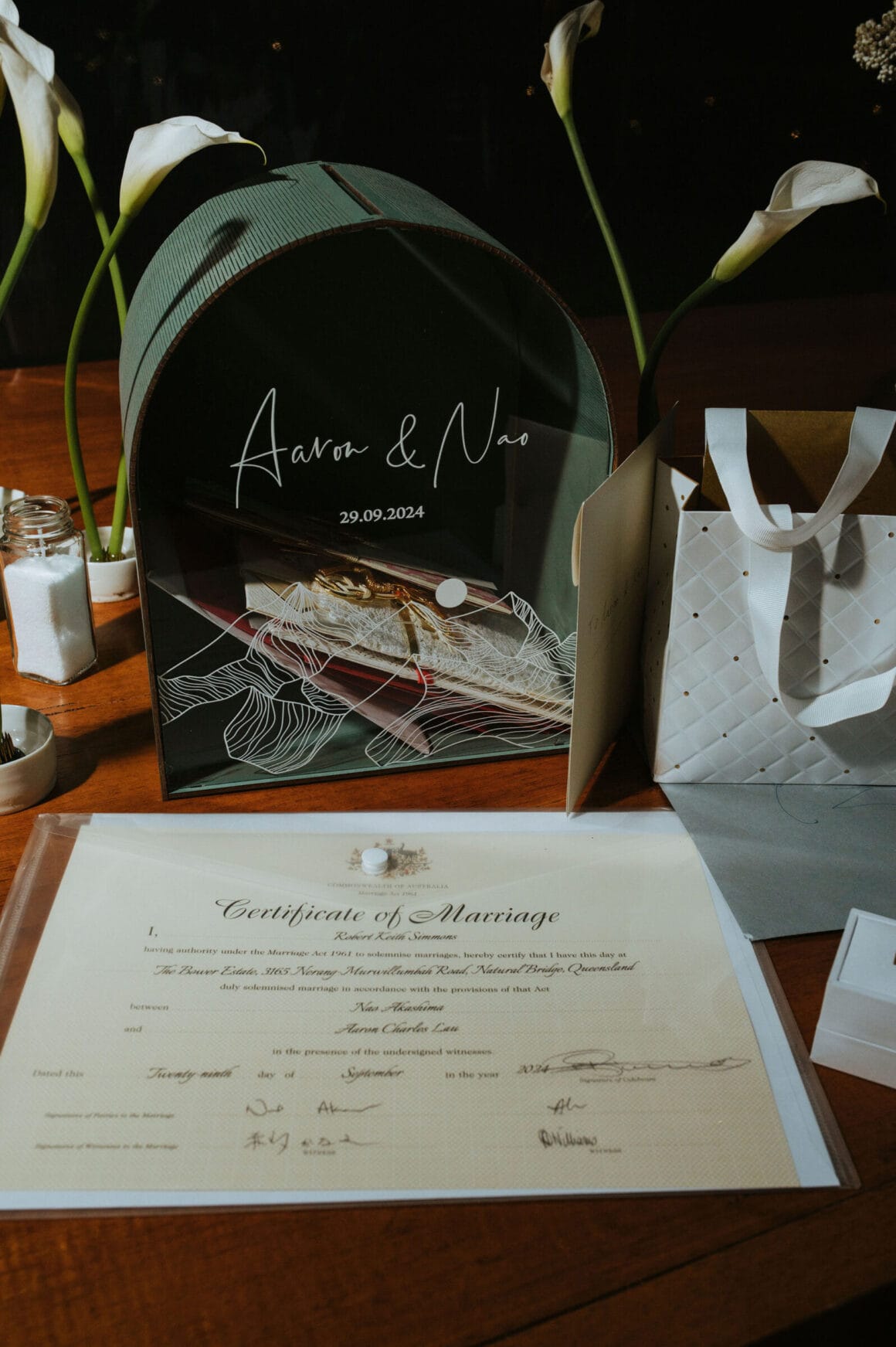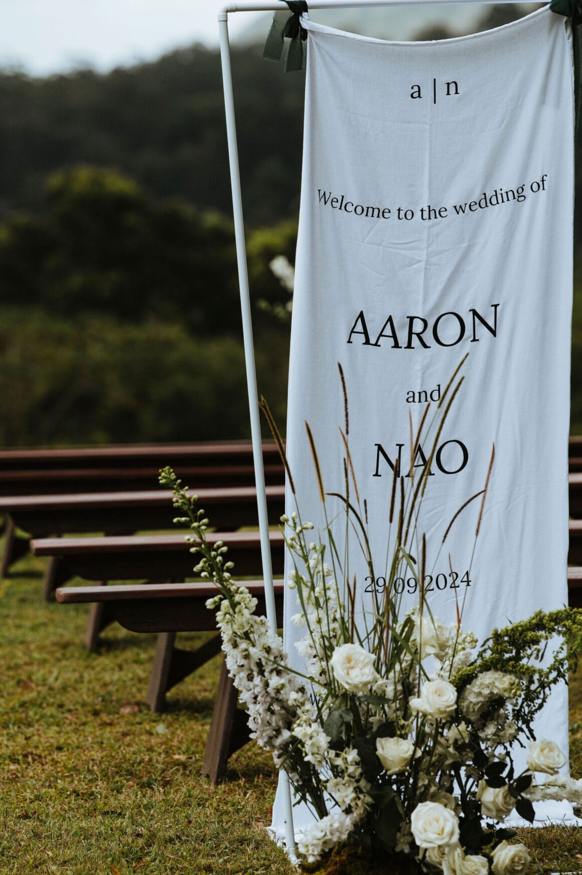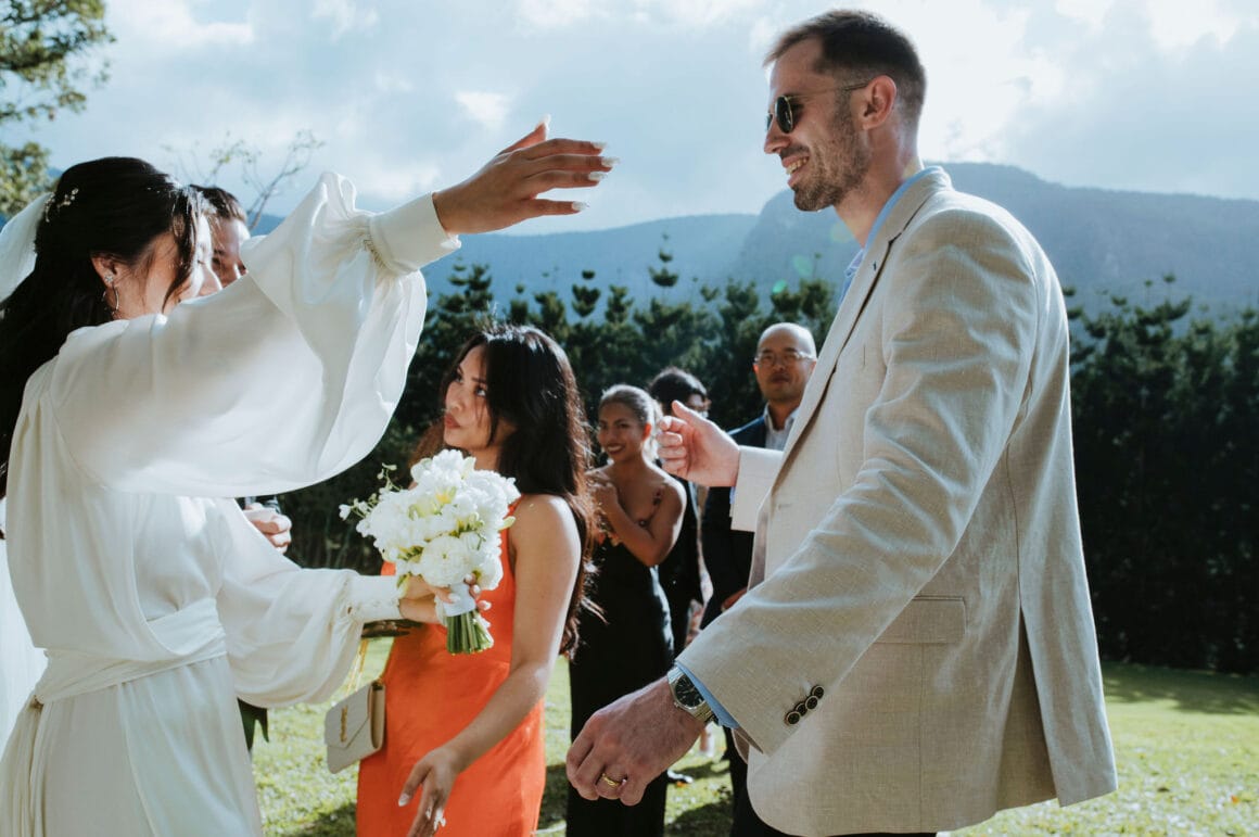 LITTLE LOL “Aaron’s ring ended up being a little too tight (thanks to big knuckles) during the ceremony, so the celebrant pulled out some lubricant to help me (Nao) get the ring on his finger. It still took a while, but after a lot of giggles from the audience, it finally went on!”