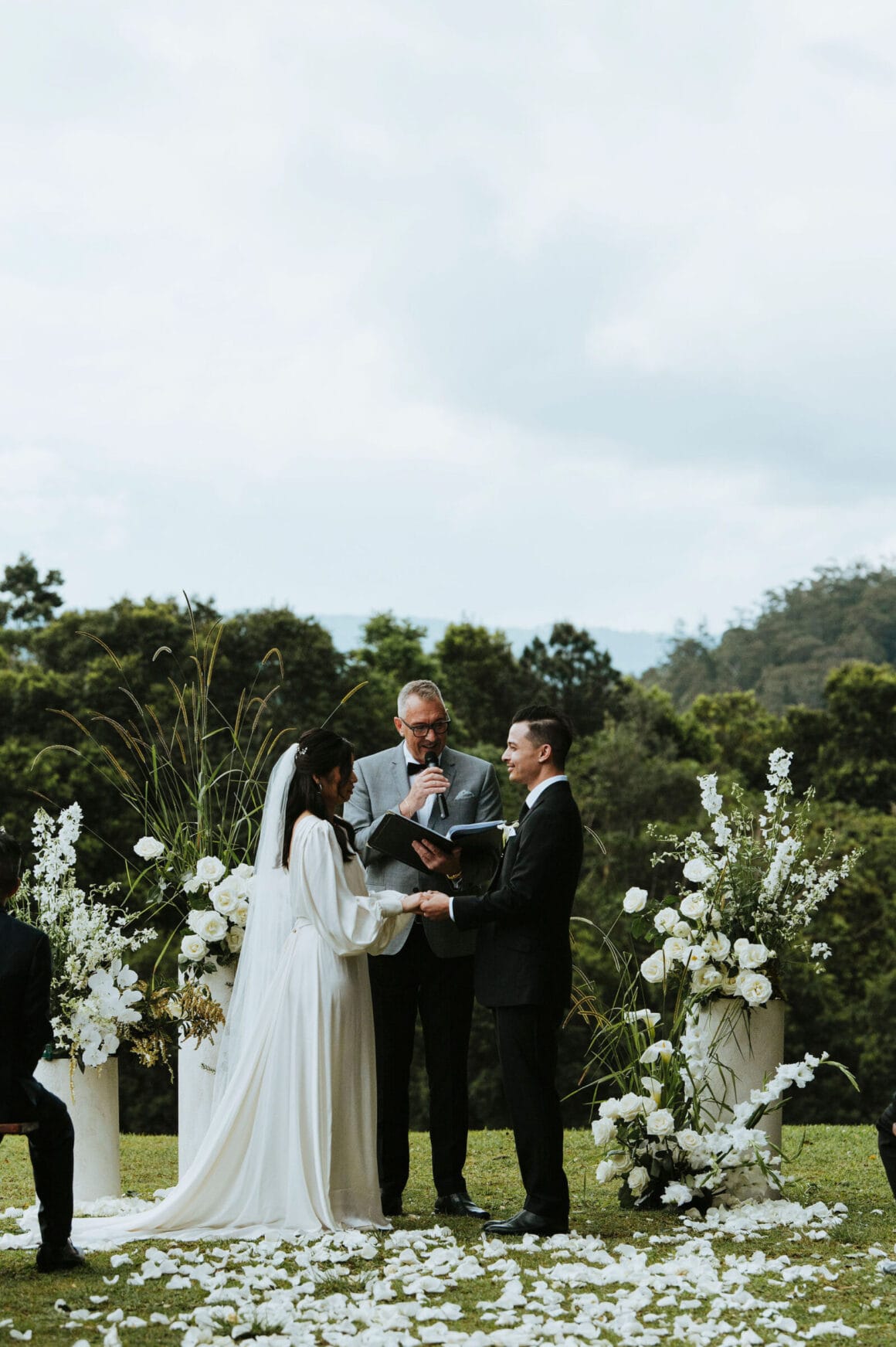 THE VENUE “We knew we wanted a mountain view setting in the hinterland. After touring eight venues, we chose The Bower Estate for its breathtaking views, which we thought would be perfect for our cocktail-style wedding. We also loved The Bower Estate because of their catering partner, Ridgeway Catering, who are known for their incredible food. It just felt like the right fit.”
