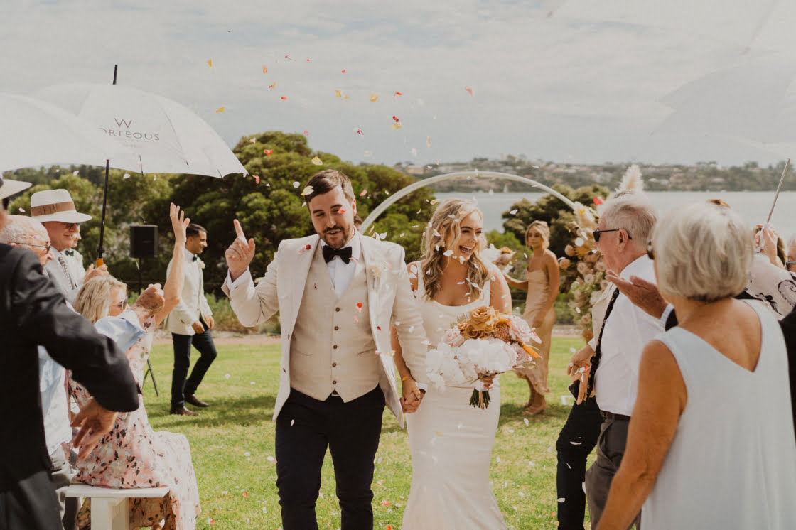 12 years after getting together, these two tied the knot in one beautifully styled wedding by the water that was actually a backup venue, would you believe?! Thanks to COVID lockdowns that “did the dirty on us,” they literally made the decision to change their wedding location (date, time and a fair bit of the aesthetic) a week out from their originally planned date. Incredible, right? Lens lady Paris Hawkin Photography was responsible for all the gorgeous pics, so scroll down, stat, to see more…