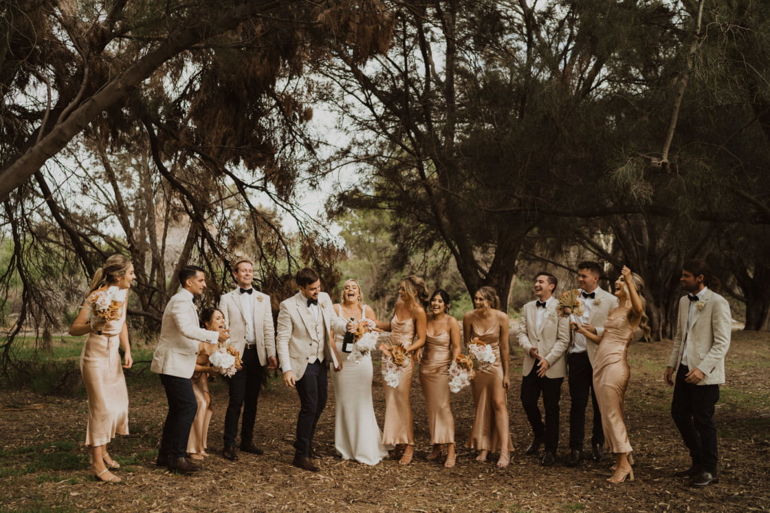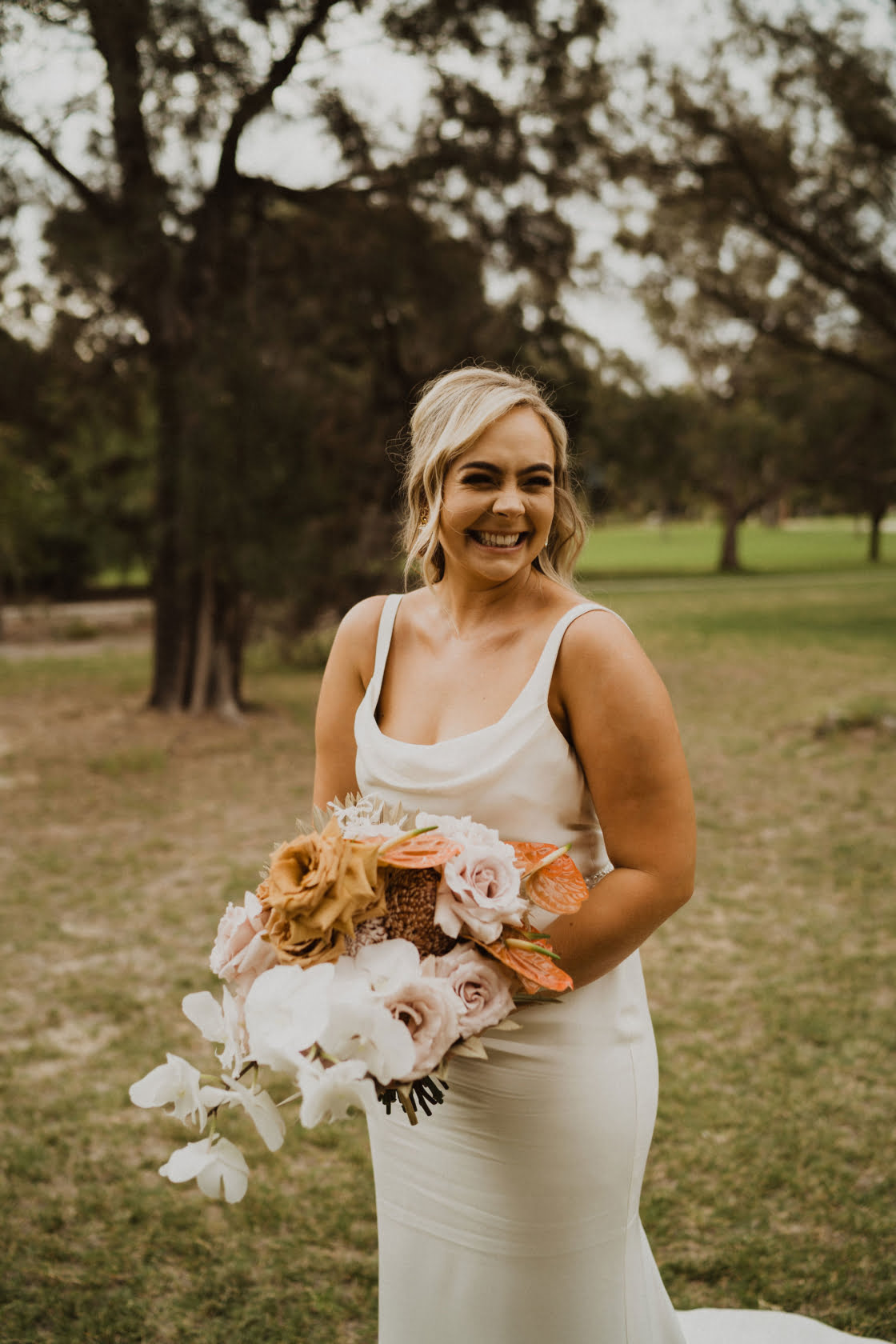 THE INSPO “Initially I wanted a really warm, soft and earthy colour palette, nothing too fancy. However, when we changed venue locations we had to accomodate the colours and textures to suit the venue. Our florist, Alicia of The Wildflower Perth did such an amazing job of incorporating warm hues, with pops of pink and peach to match the bridesmaids and stationary but also contrast the colours of the venue. The matching decor and table settings really tied in and created a beautiful colour scheme.”