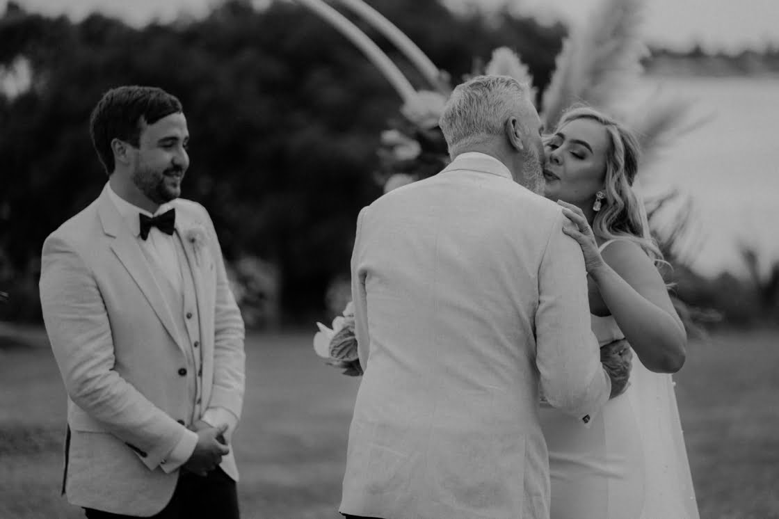 CONTRIBUTING VENDORS Photographer Paris Hawkin Photography Videographer Life Atlas Film Co Florist The Wildflower Perth Stationery Honéey Designs Ceremony Point Resolution Reserve Dalkeith Reception Private Property Catering Heyder & Shears Cake Sukar Hire Items Hire Society & Yallingup Event Hire Lighting Hire Micktric Events Entertainment DJ Siân Celebrant Hitched by Kate Rings Linneys Transport Very Nice Classics & Chasing Cars THE BRIDE Custom Bridal Gown Brides by Design Accessories Chanel (Earrings) Hair Ame Hair Artistry (Melinda Doust) Makeup Ruby Arnold Make Up Artist Bridesmaid Dresses Shona Joy THE GROOM Suit Daniel Hetcher Shirt, Bow Tie & Cufflinks Hugo Boss Shoes Aquila Groomsmen Suits Daniel Hetcher