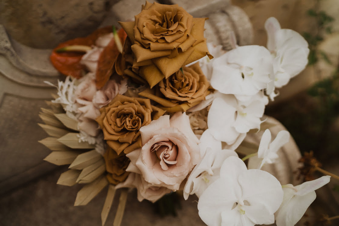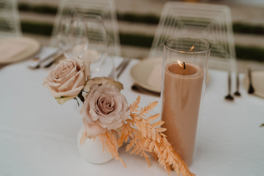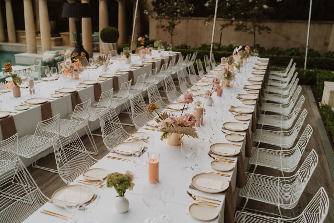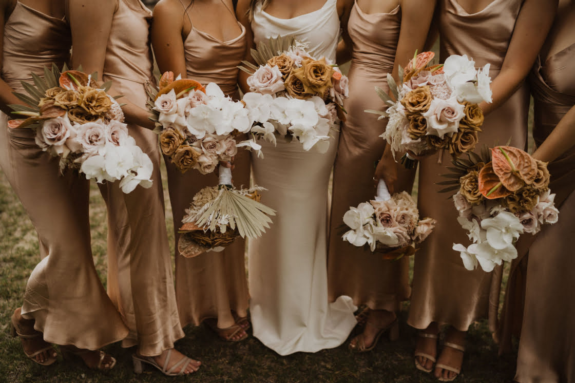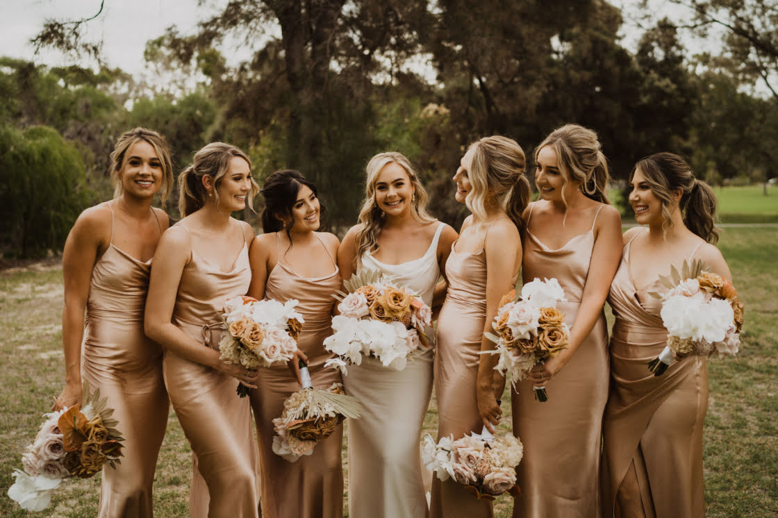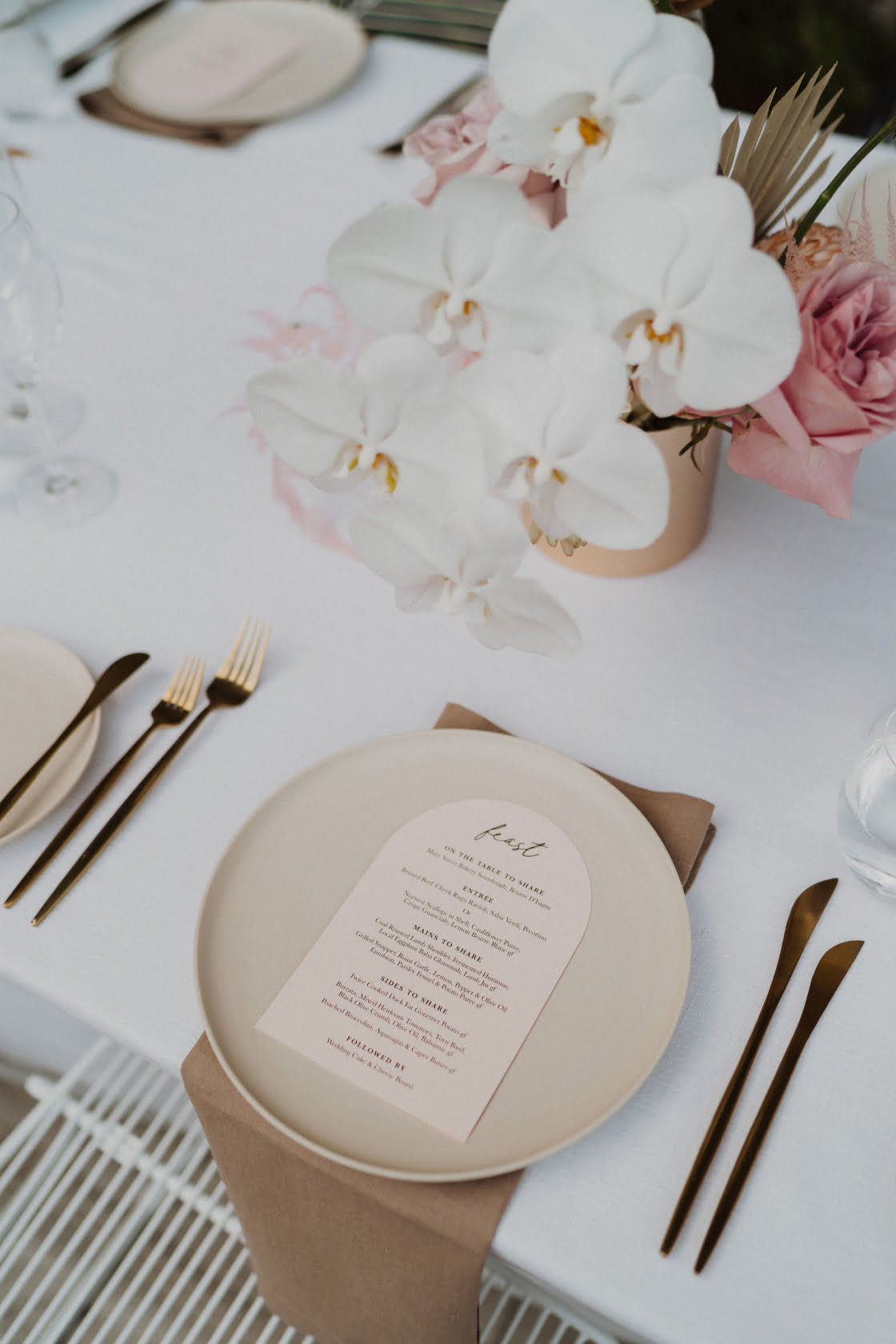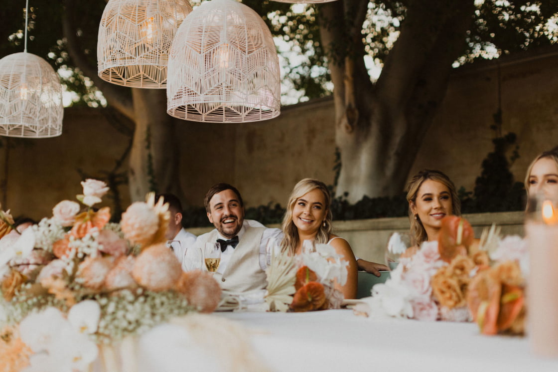 THE INSPO “Initially I wanted a really warm, soft and earthy colour palette, nothing too fancy. However, when we changed venue locations we had to accomodate the colours and textures to suit the venue. Our florist, Alicia of The Wildflower Perth did such an amazing job of incorporating warm hues, with pops of pink and peach to match the bridesmaids and stationary but also contrast the colours of the venue. The matching decor and table settings really tied in and created a beautiful colour scheme.”