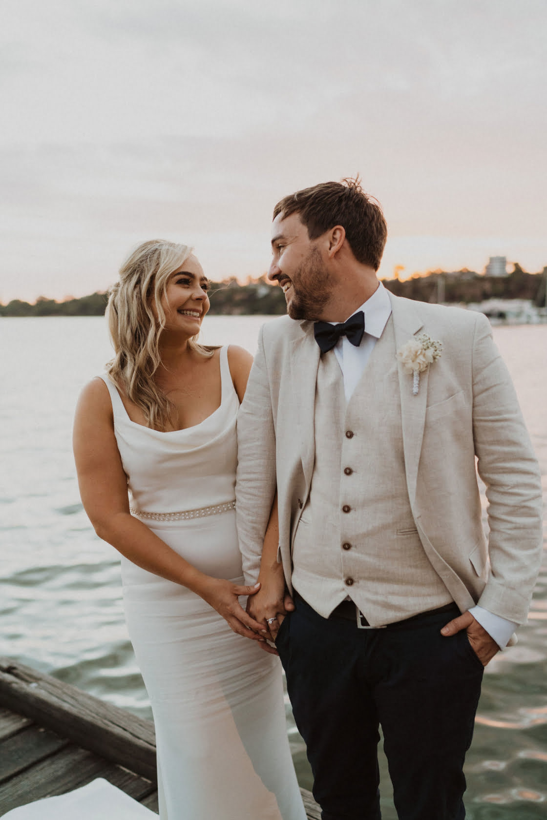 12 years after getting together, these two tied the knot in one beautifully styled wedding by the water that was actually a backup venue, would you believe?! Thanks to COVID lockdowns that “did the dirty on us,” they literally made the decision to change their wedding location (date, time and a fair bit of the aesthetic) a week out from their originally planned date. Incredible, right? Lens lady Paris Hawkin Photography was responsible for all the gorgeous pics, so scroll down, stat, to see more…