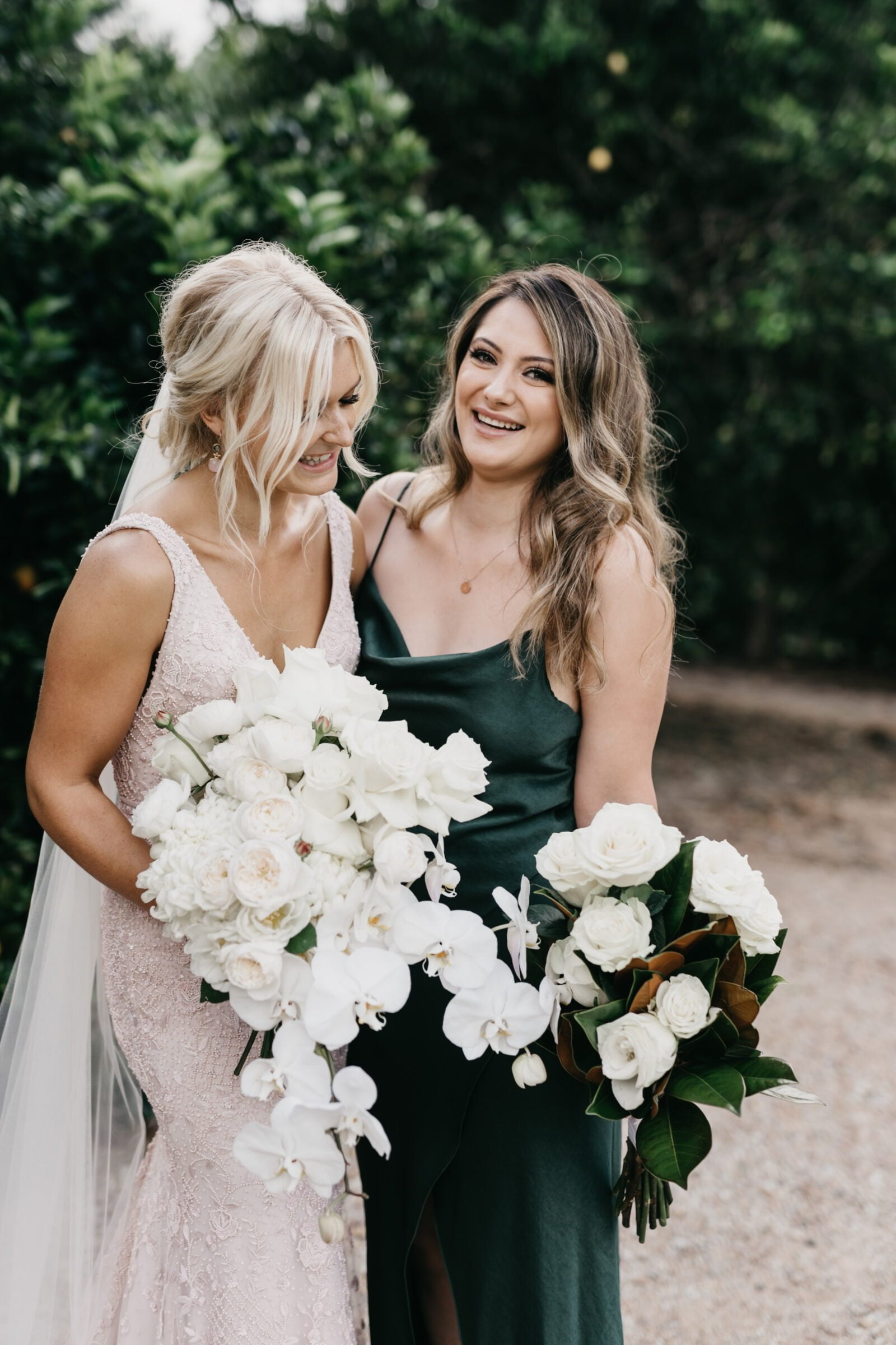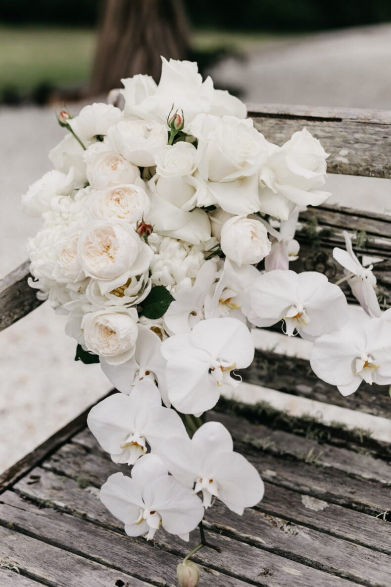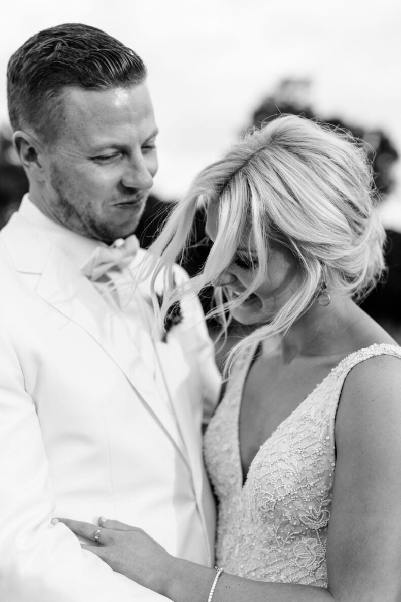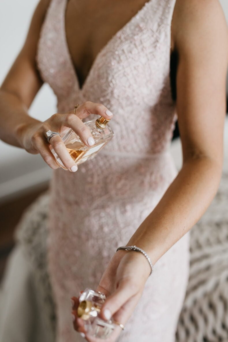 THE DRESS “I really wanted to wear something no one else had, so locked in a custom Jane Hill design a year out from the wedding. Then I saw a beautiful blush dress on the designer’s Instagram five months out from the wedding and I was in love. I wanted a whole new dress! Jen (the Creative Director) was calm, professional and accommodating. We kept the same silhouette, but we changed the colour to blush and beaded it from top to bottom. The detail was breathtaking and gave me the editorial edge I wanted, matching the vibe and styling of the rest of the wedding.”