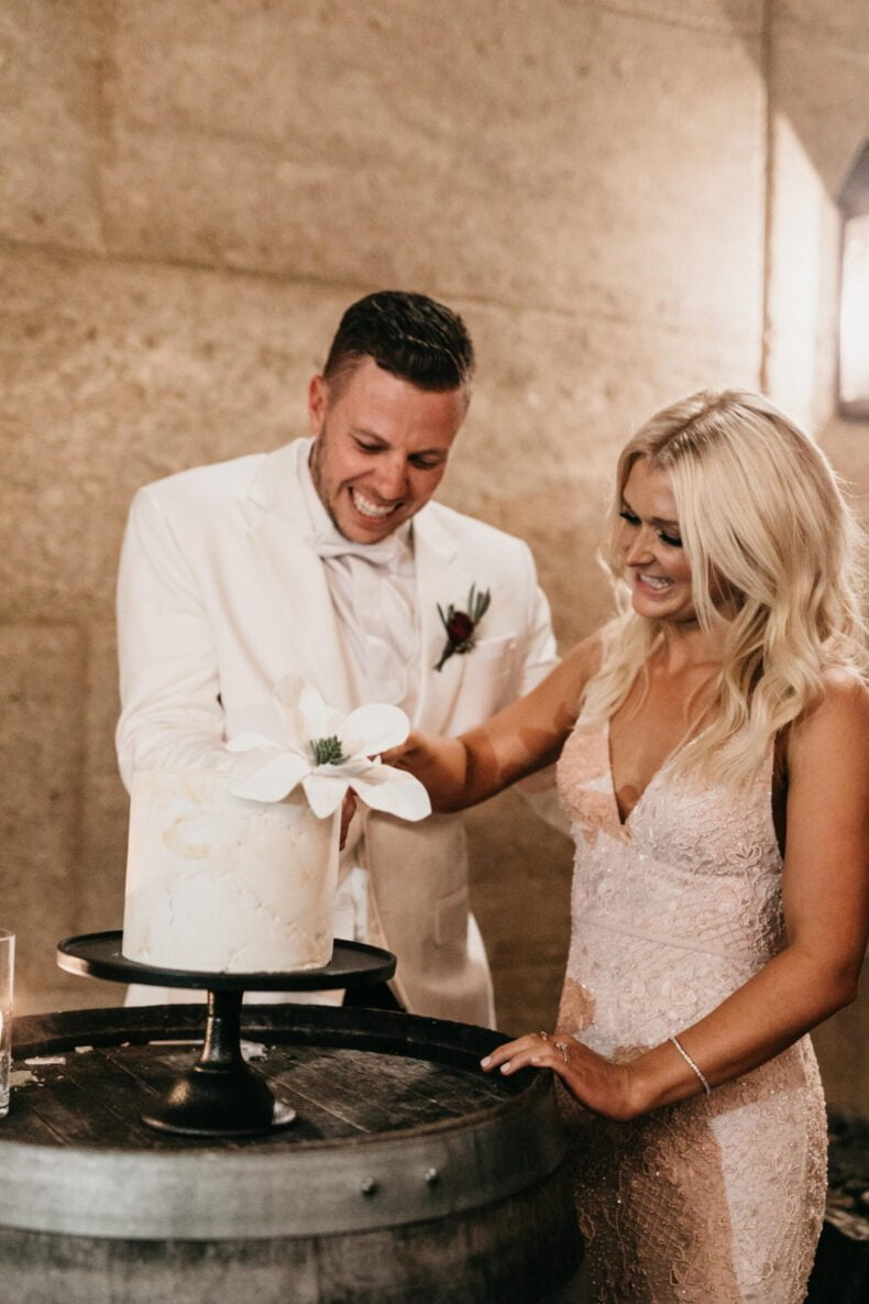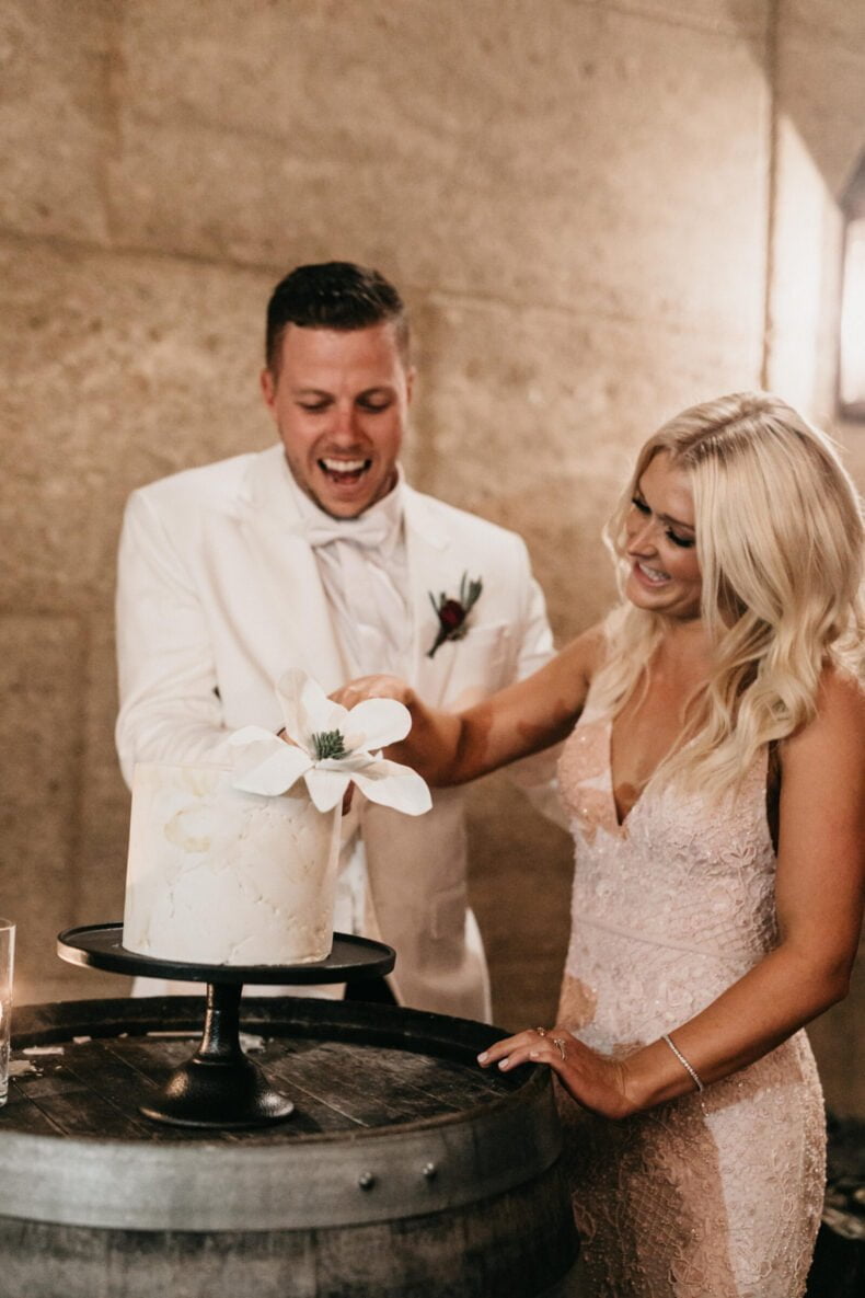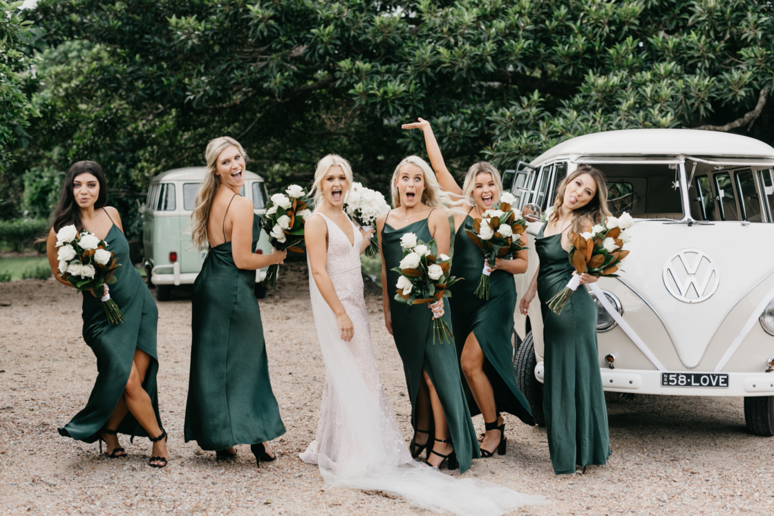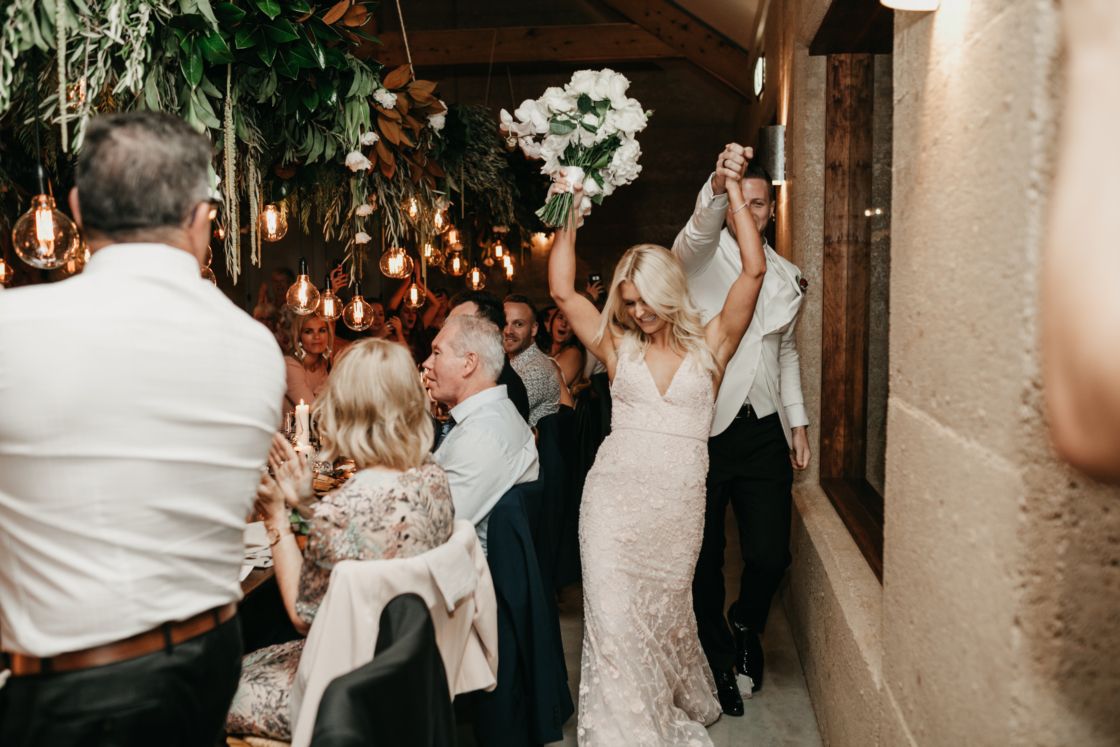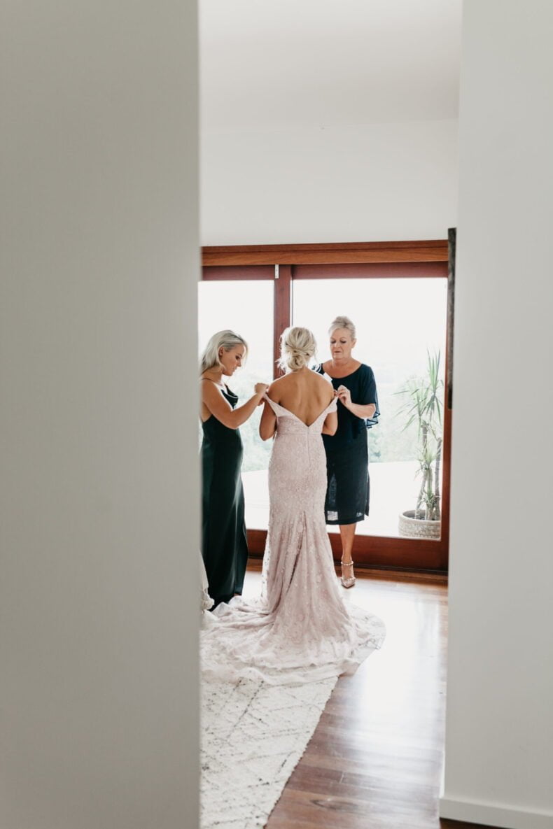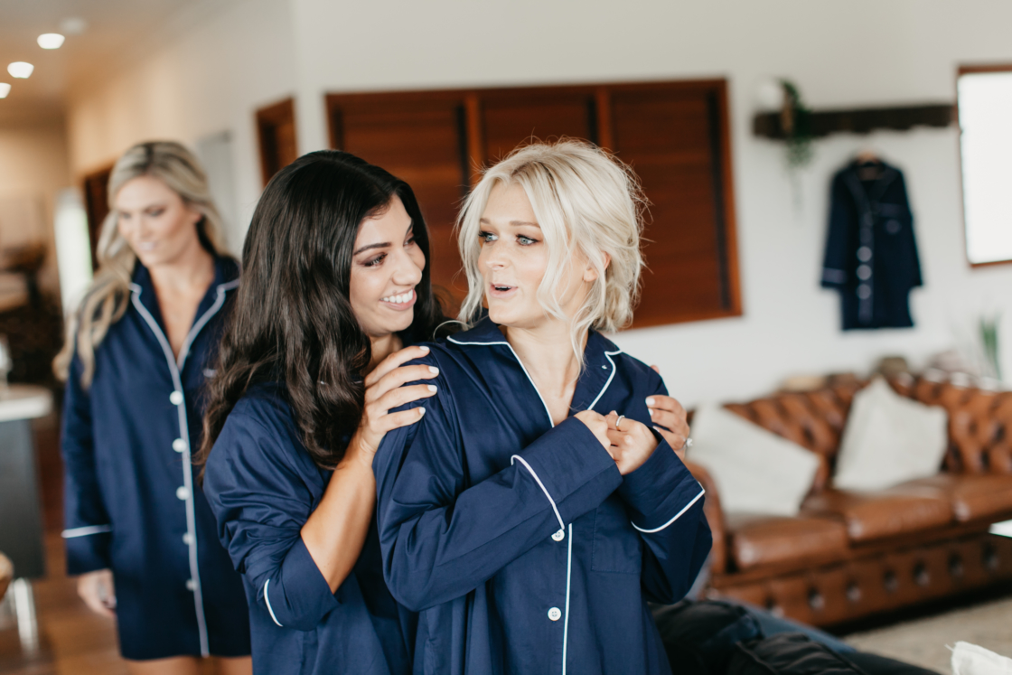 This fun-loving couple met eight years ago, at one of our fave festivals from back in the day, Big Day Out, and we like them already. They then got engaged on a surprise birthday trip to Byron Bay, while horse riding, where a fake cramp played the perfect part in Andrew’s proposal. Fast-forward to their big day and not only did the stunning bride go for a pink dress, but the couple used a long list of HM directory vendors to bring it all together. From photographer, Cassandra Ladru, to cinematographer, GoldBear Wedding Films, there was also The White Tree on entertainment, The Future Mrs on hair and makeup and the bridal party in personalised pj’s from Jasmine & Will. Phew! We told you it was a long list! Now do yourself a favour and scroll down for the perfect pics and nitty-gritty details…
