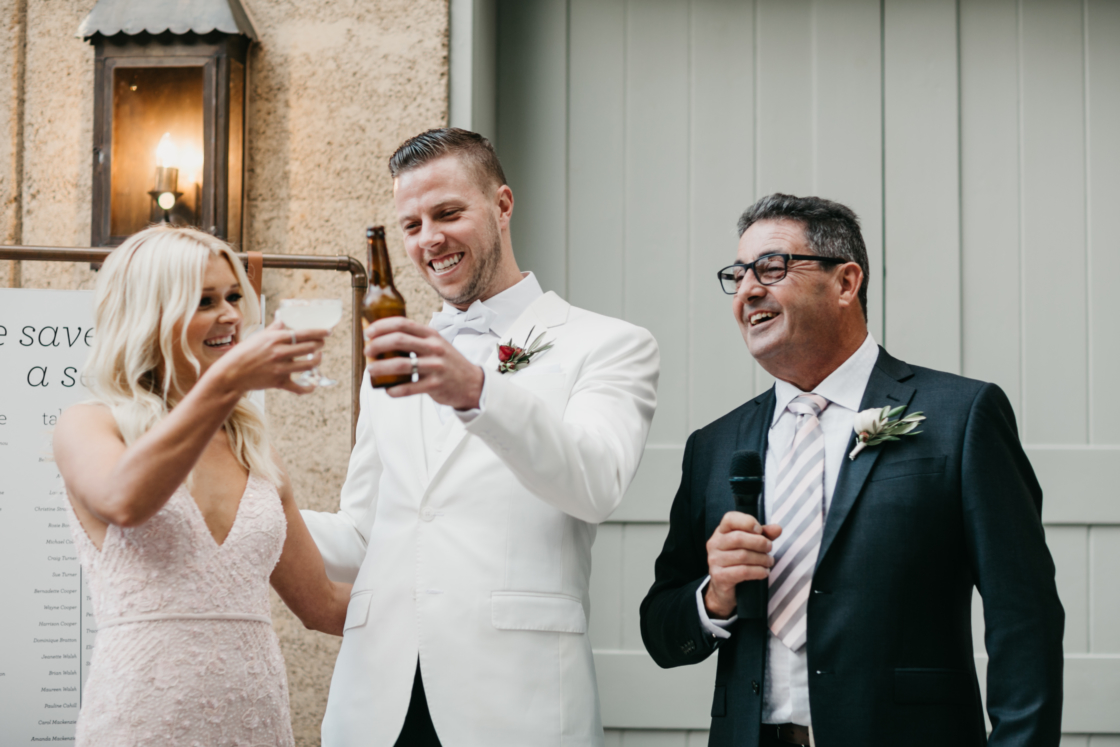 LITTLE LOL “Andrew is obsessed with the Moto GP (bike racing) and his two best men did their speech as a race call. The detail was epic! One started off as the pit reporter (outside on the balcony) and the other up in the commentary box (at the front). They were even wearing headsets like commentators!”