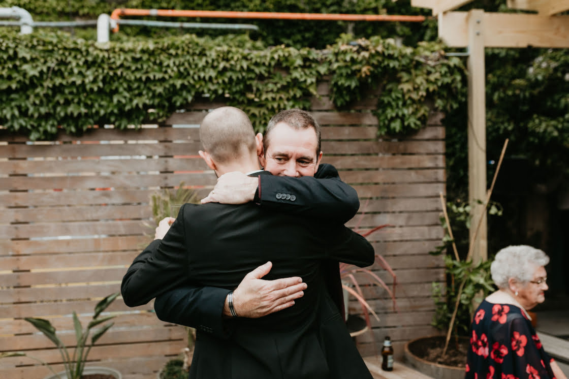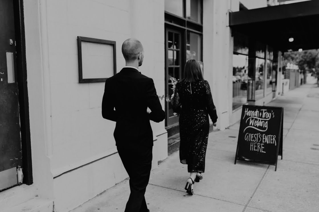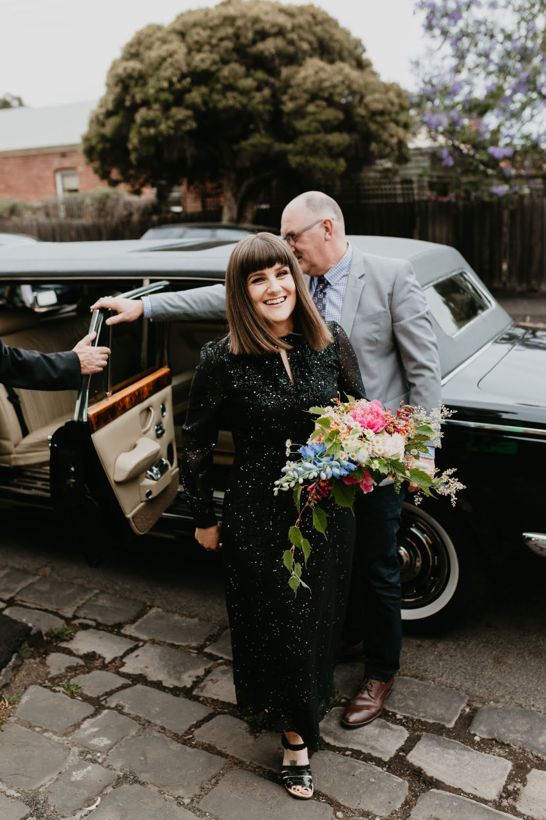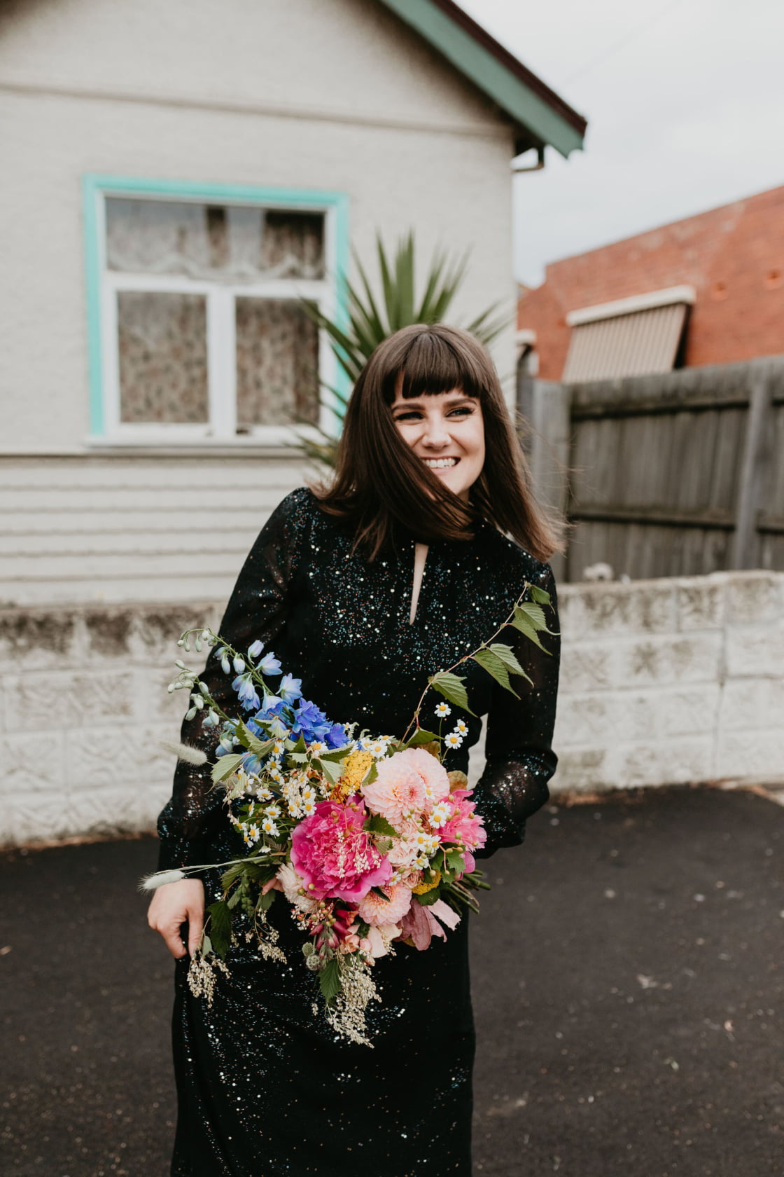 THE DRESS “Hannah initially found a dress not long after the engagement at Lee Mathews. It was a beautiful black silk dress that she fell in love with straightaway, but as the year went on and after multiple try-ons, she became unsure. Ten days (!!!) before the wedding, she decided she needed a new dress. Friends and family jumped on board and everyone was trawling the internet looking for the perfect one. Hannah eventually found it on ASOS, of all places – it was inexpensive and not from a fancy label, but she knew it was ‘the one’. It arrived less than a week out from the wedding and luckily it fit like a glove!”