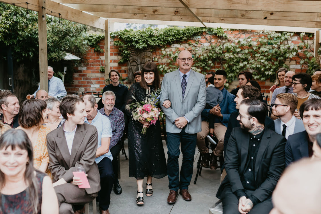 When pastry chef-turned-specialty butcher Hannah met coffee-loving barista Troy back in high school, they bonded over “a love of indie music and drinking in parks”. Seven years later, the pair reconnected at Troy’s sister’s wedding and that spark was reignited! The sweet, simple proposal came on New Year’s Day 2019 over a picnic in the park, shares the groom. “We started chatting about our plans for the year (common theme for us!) and Hannah mentioned getting married. It flowed from there and ended with a piece of grass tied around Hannah’s finger as a faux engagement ring.” Could. Not. Love. This. More.