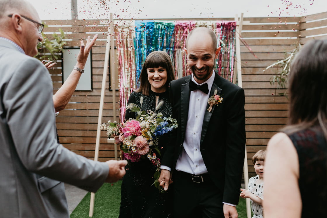 THE VIBE “Our main inspiration was to keep it as true to ourselves as we could. We had no running theme, however, drawing inspiration from our day to day lives, we knew we wanted to wear black (that’s what we feel most comfortable in) and the decorations to be bright and colourful. It was important to us to be comfortable rather than trying to stick to traditions.”
