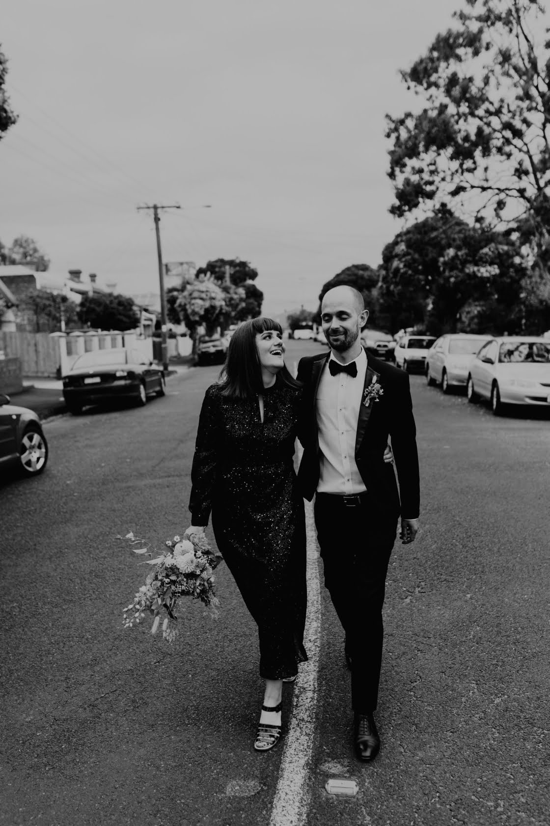 CONTRIBUTING VENDORS Photographer Miranda Stokkel Florist North St Botanical Ceremony, Reception & Catering Grandview Hotel Brunswick West Cake Pollen Pastry Wedding favours Fudge (made by bride), Lombard (bags) Signage Kmart (letter boards) Celebrant Jac the Hitcher Rings Nicky Hepburn (bride), Imogen Zino (groom) Transport Triple R Luxury Car Hire THE BRIDE Gown & Reception Shoes ASOS Ceremony shoes Gorman Hair & Makeup Sarah Jobson at Making Pretty THE GROOM Suit, Shirt & Shoes Zara Bow tie Menzclub Barber Electric Brain Barbershop