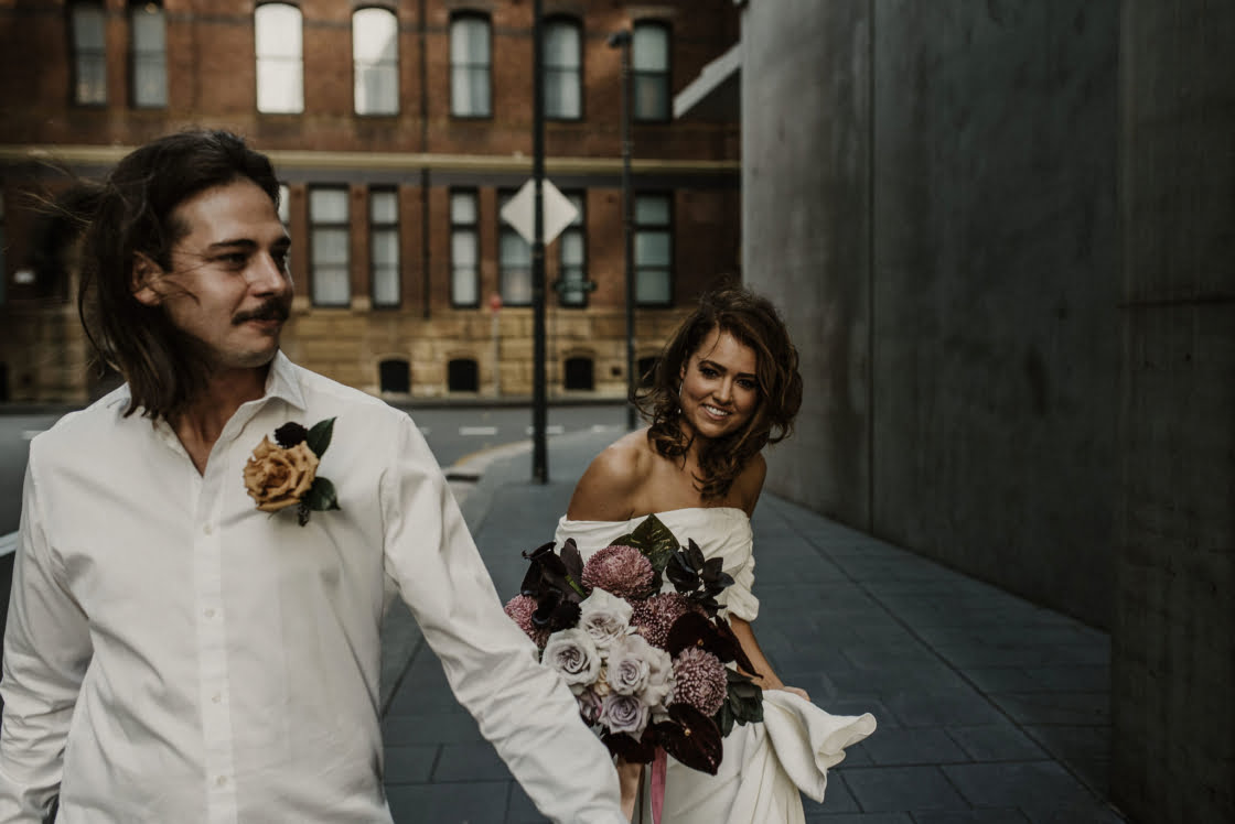 FAVOURITE MOMENT “Our favourite moment was meeting up before the ceremony for photos at the Old Clare Hotel in Chippendale. Huw’s friend works at the hotel and gave us 2 nights as a wedding gift. It was so nice to see each other before the wedding, to have a drink, get some photos and chill for a moment. We walked down the aisle together which was pretty special.”