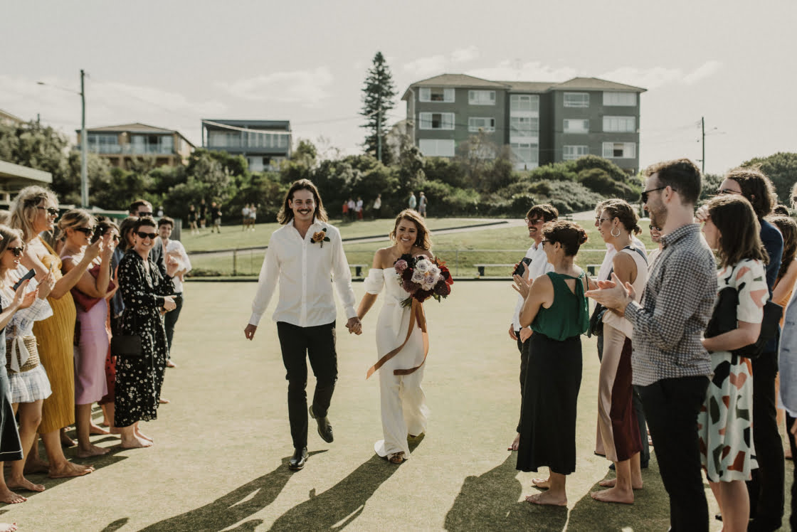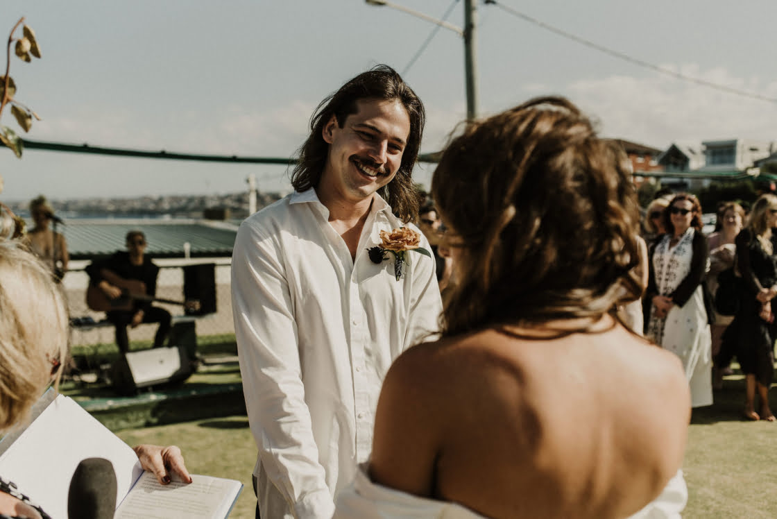 CONTRIBUTING VENDORS Photographer The Salty Shutter Stylist, Florist & Signage The Make Haus Venue Clovelly Bowling Club Catering Rustic Kitchen Food Trucks The Superior Express Cake The Cook and The Baker Entertainment Sexy Sunday Jam Celebrant Sally Young (Family) Rings Protea Diamonds via Temptation Jewellery BRIDE Skirt Antonio Bernardi via The Outnet Top Rachel Gilbert Shoes MLM the Label Hair & Makeup Pauline Demrijian GROOM Shirt & Pants MJ Bale Shoes RM Williams Barber Stanley & Co