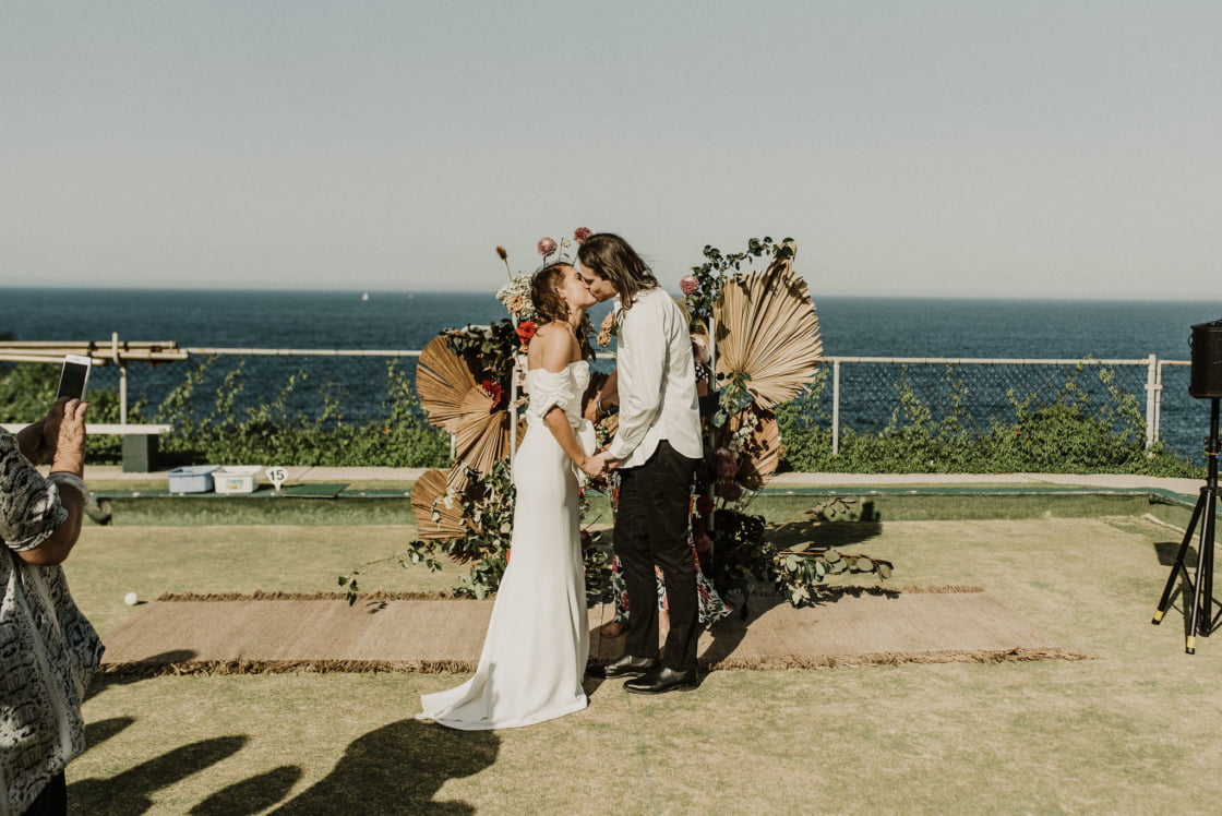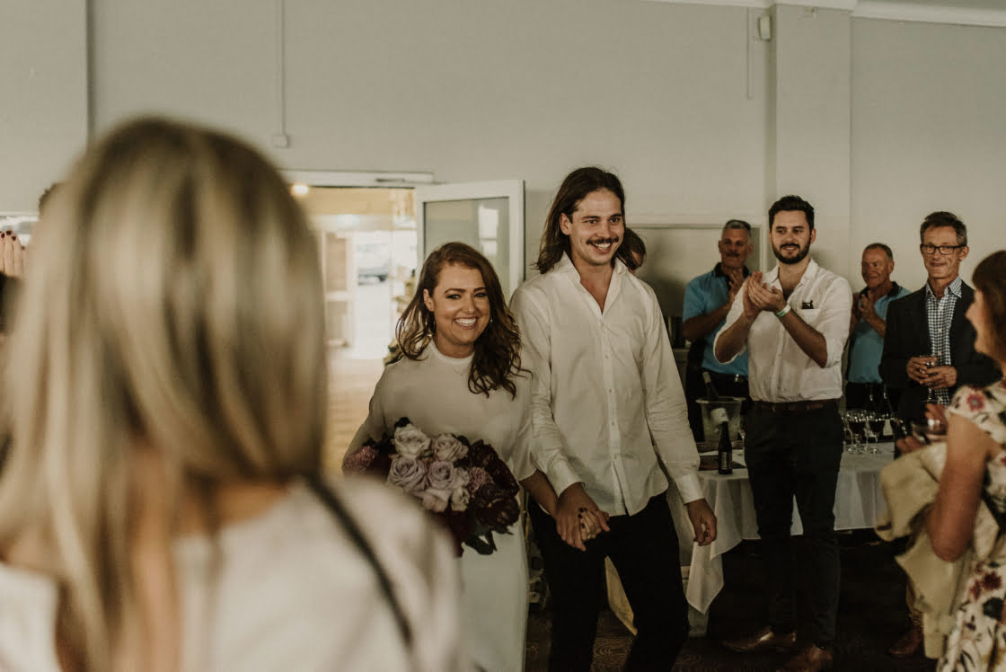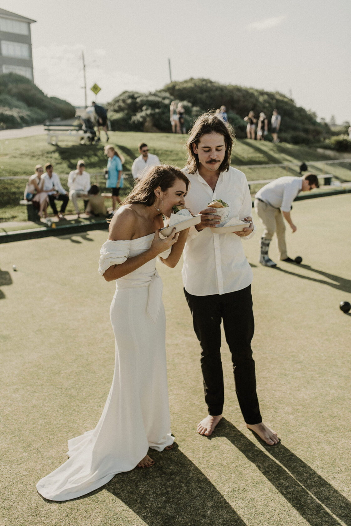 STANDOUT VENDORS “They were all AMAZING! Um, Dane our photographer [The Salty Shutter]! What a legend, he made us feel comfortable the whole day, got the best shots and even drove us to the wedding in his little red car. We were going to uber but this was way more practical! Marcello from Rustic Kitchen did our reception catering (we did a massive grazing table) and went above and beyond with his beautiful fresh meats, cheeses and other antipasti goodness. He even collected our donuts from The Cook and The Baker for us, what a lovely guy. Pauline, my hair and makeup artist was so easy going and smashed out my mum, my sister, my bestie and me in a couple of hours. She was no fuss, like me. The Make Haus was great too, you just trust their vibe and they will deliver. Our ceremony and reception styling was next level. Superior Burgers were chill too, very little admin involved. They made a cute sign for our wedding and kept the burgers coming thick and fast for a couple of hours. Last, but DEFINITELY not least, was our band – Sexy Sunday Jam. We got more compliments about the band than anything else. True crowd-pleasers who made our day/ night”.