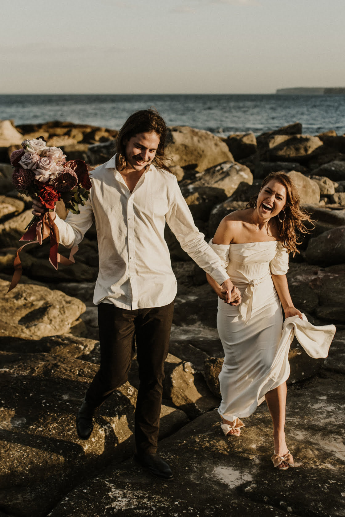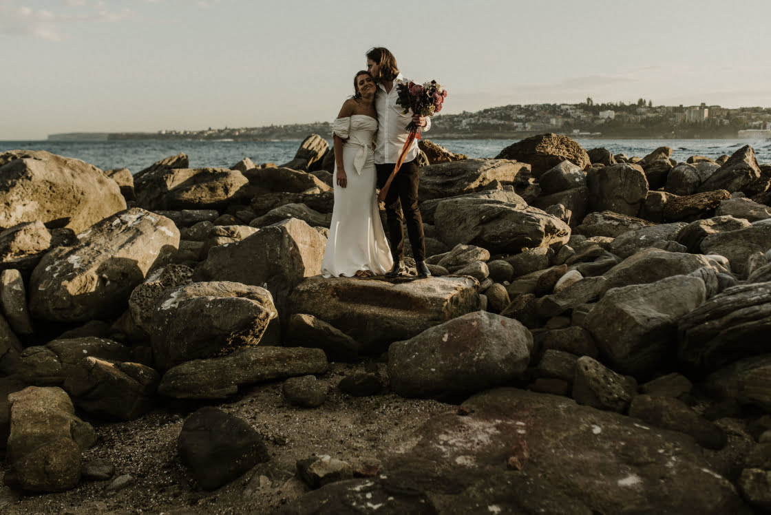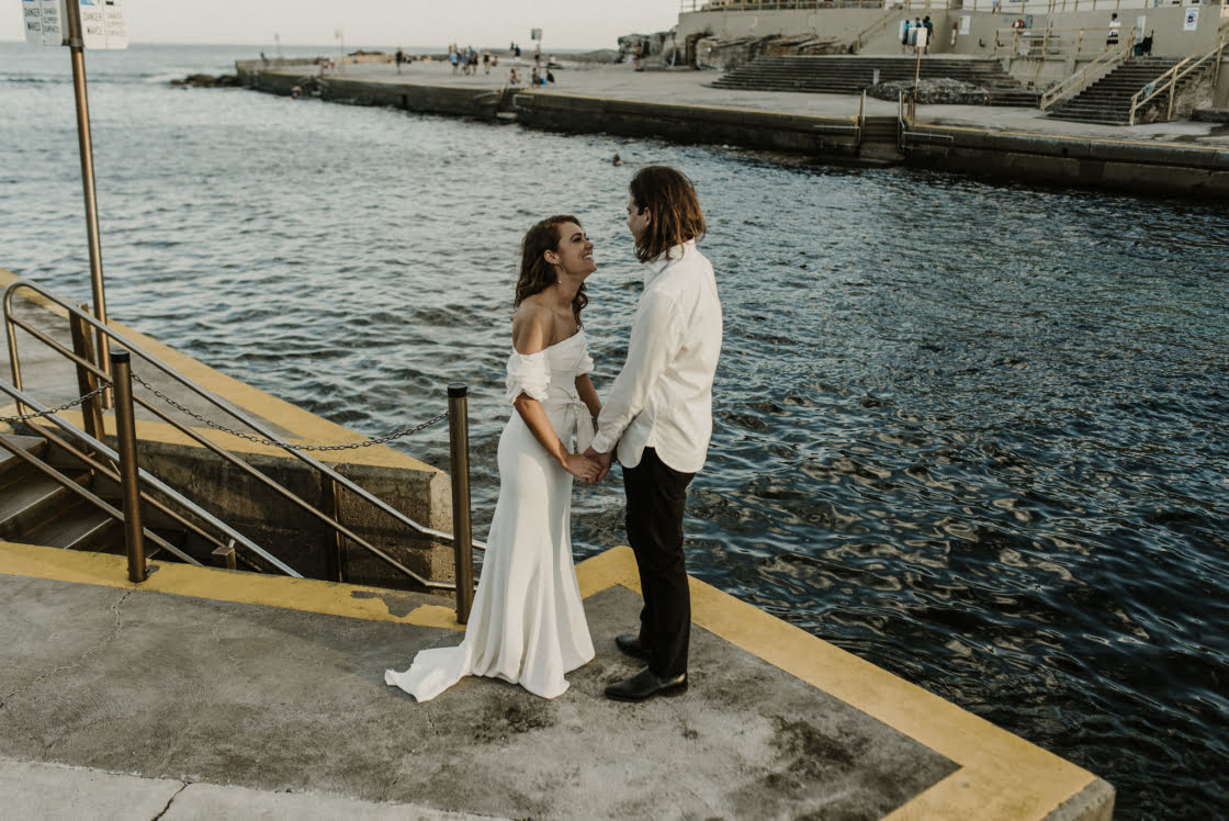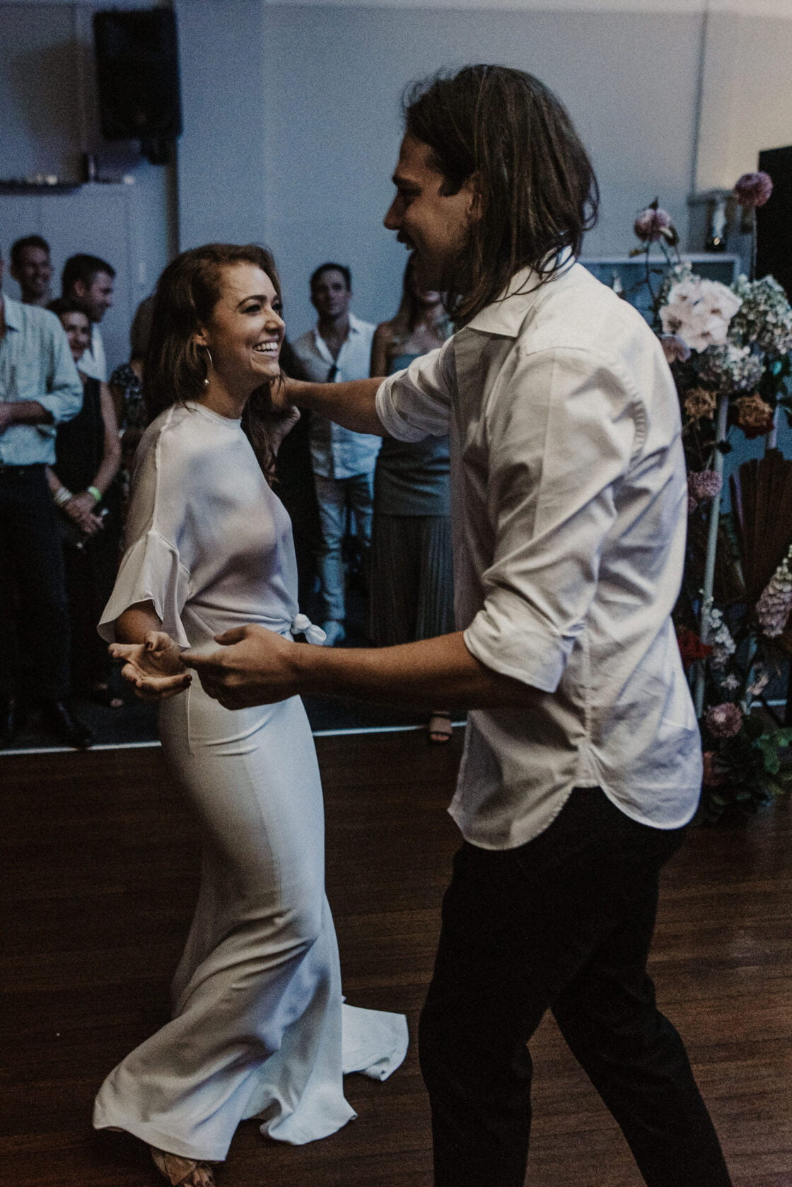 STANDOUT VENDORS “They were all AMAZING! Um, Dane our photographer [The Salty Shutter]! What a legend, he made us feel comfortable the whole day, got the best shots and even drove us to the wedding in his little red car. We were going to uber but this was way more practical! Marcello from Rustic Kitchen did our reception catering (we did a massive grazing table) and went above and beyond with his beautiful fresh meats, cheeses and other antipasti goodness. He even collected our donuts from The Cook and The Baker for us, what a lovely guy. Pauline, my hair and makeup artist was so easy going and smashed out my mum, my sister, my bestie and me in a couple of hours. She was no fuss, like me. The Make Haus was great too, you just trust their vibe and they will deliver. Our ceremony and reception styling was next level. Superior Burgers were chill too, very little admin involved. They made a cute sign for our wedding and kept the burgers coming thick and fast for a couple of hours. Last, but DEFINITELY not least, was our band – Sexy Sunday Jam. We got more compliments about the band than anything else. True crowd-pleasers who made our day/ night”.