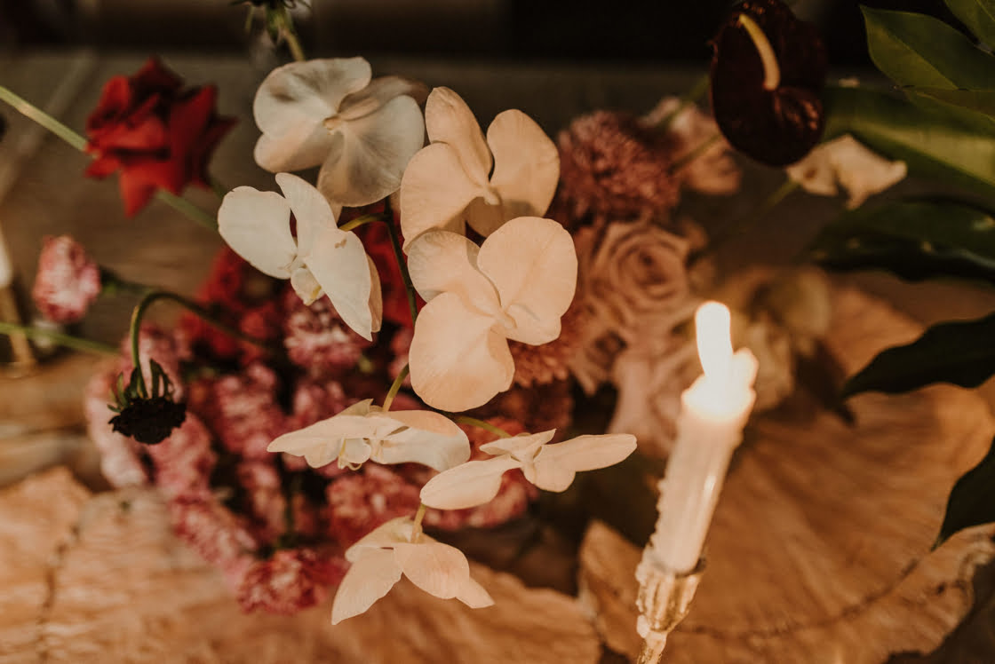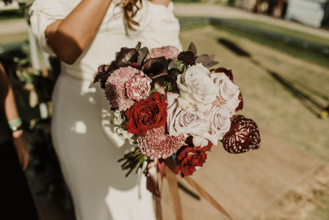 FAVOURITE DETAILS “Our flowers were amazing, The Make Haus nailed our brief and were so easy to work with. The pops of deep red and different textures were stunning.”