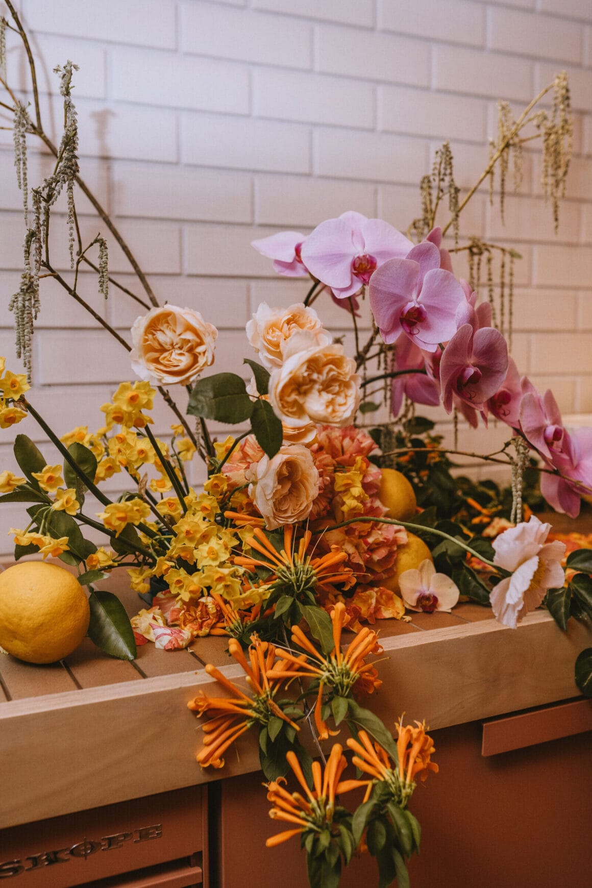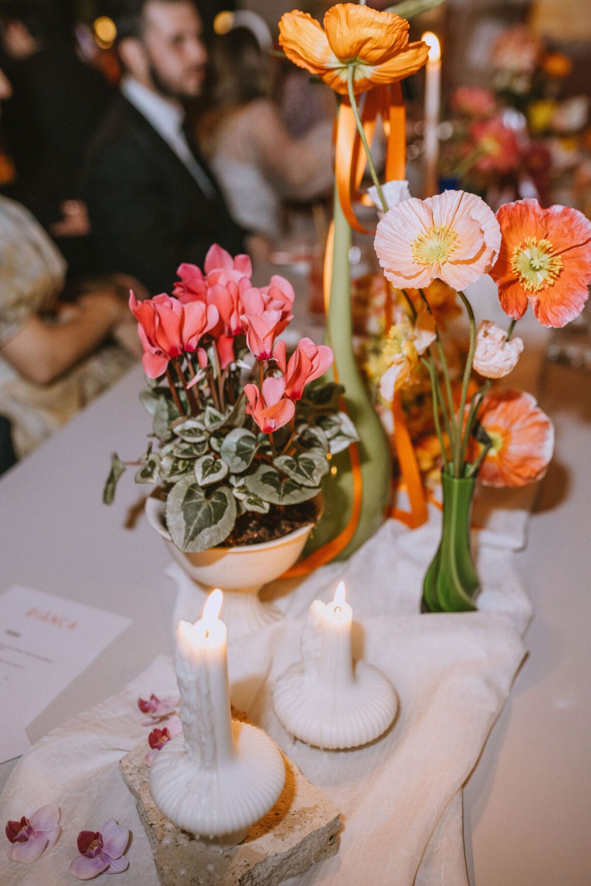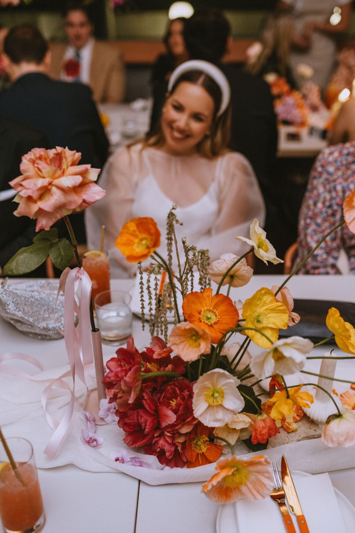 FAVE DETAILS “The florals and dinner styling were by far our favourite details. We had originally planned to do florals ourselves, but as the day got closer, we quickly realised it wasn’t as straightforward as we would have liked. By coincidence, I stumbled across an Instagram post where Fronta Floral has styled the private dining at Biànca, where our reception was. [It was two] weeks before the wedding, and we knew we needed to ditch our DIY plan and reach out . It was a Sunday morning and Davina responded to me within minutes. We let Davina take full creative license, which meant the styling was a complete surprise for everyone, including us!.”