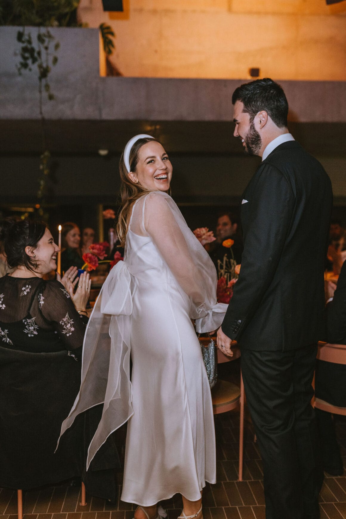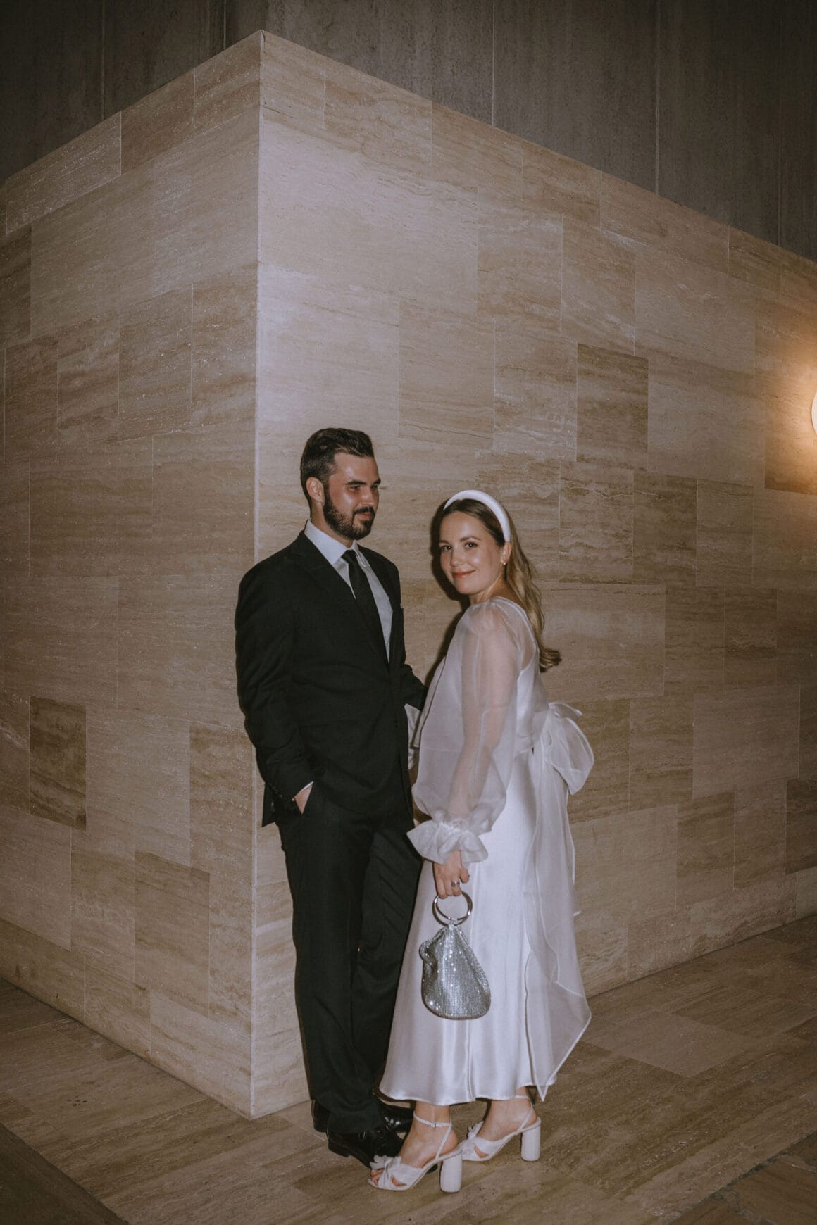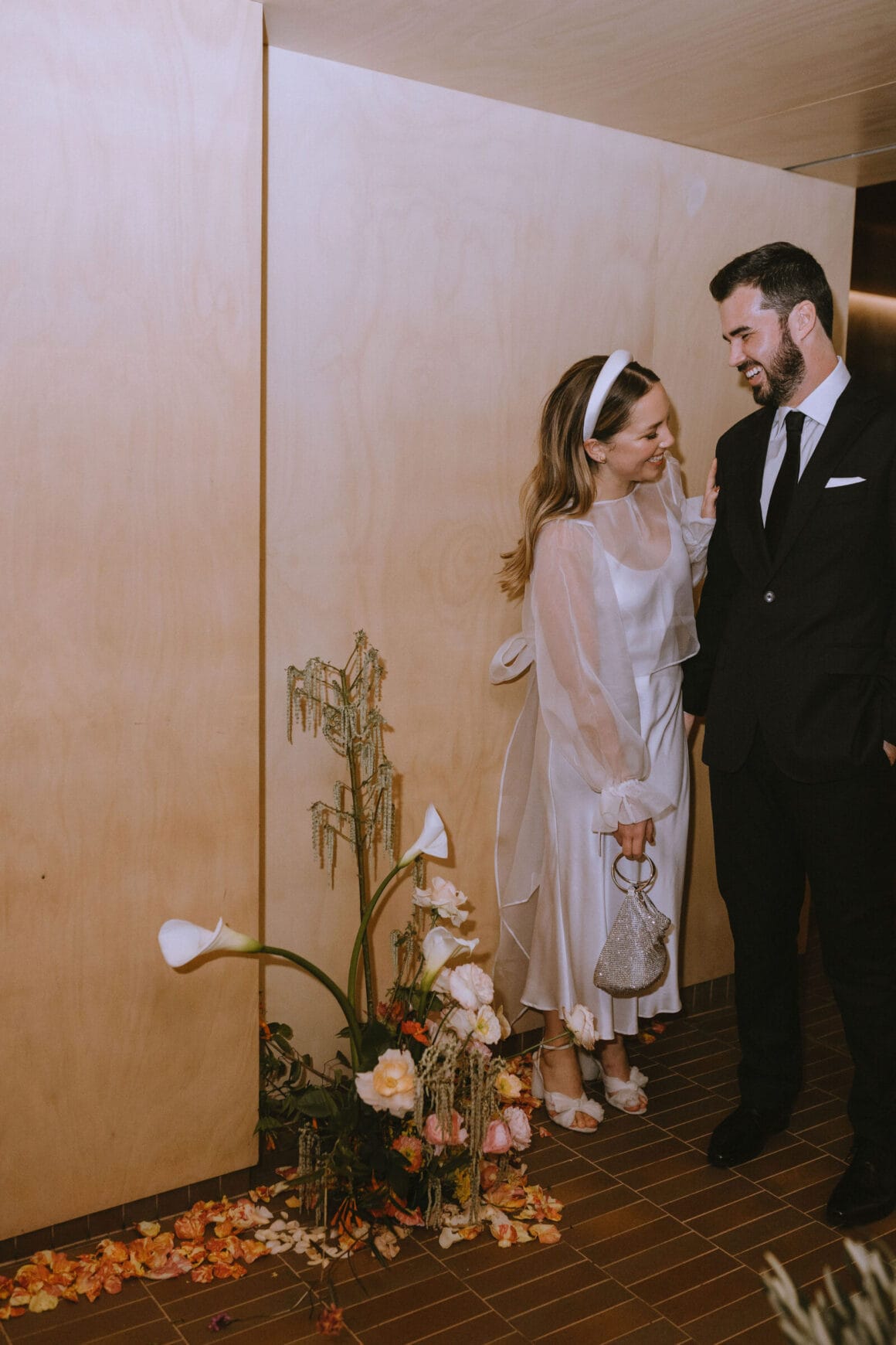 Don’t ask us to pick a favourite between Hayley’s two modern, minimalist bridal looks; it’s impossible. Meanwhile, the groom, looking equally chic, told us that M.J. Bale made getting dressed feel almost too easy.