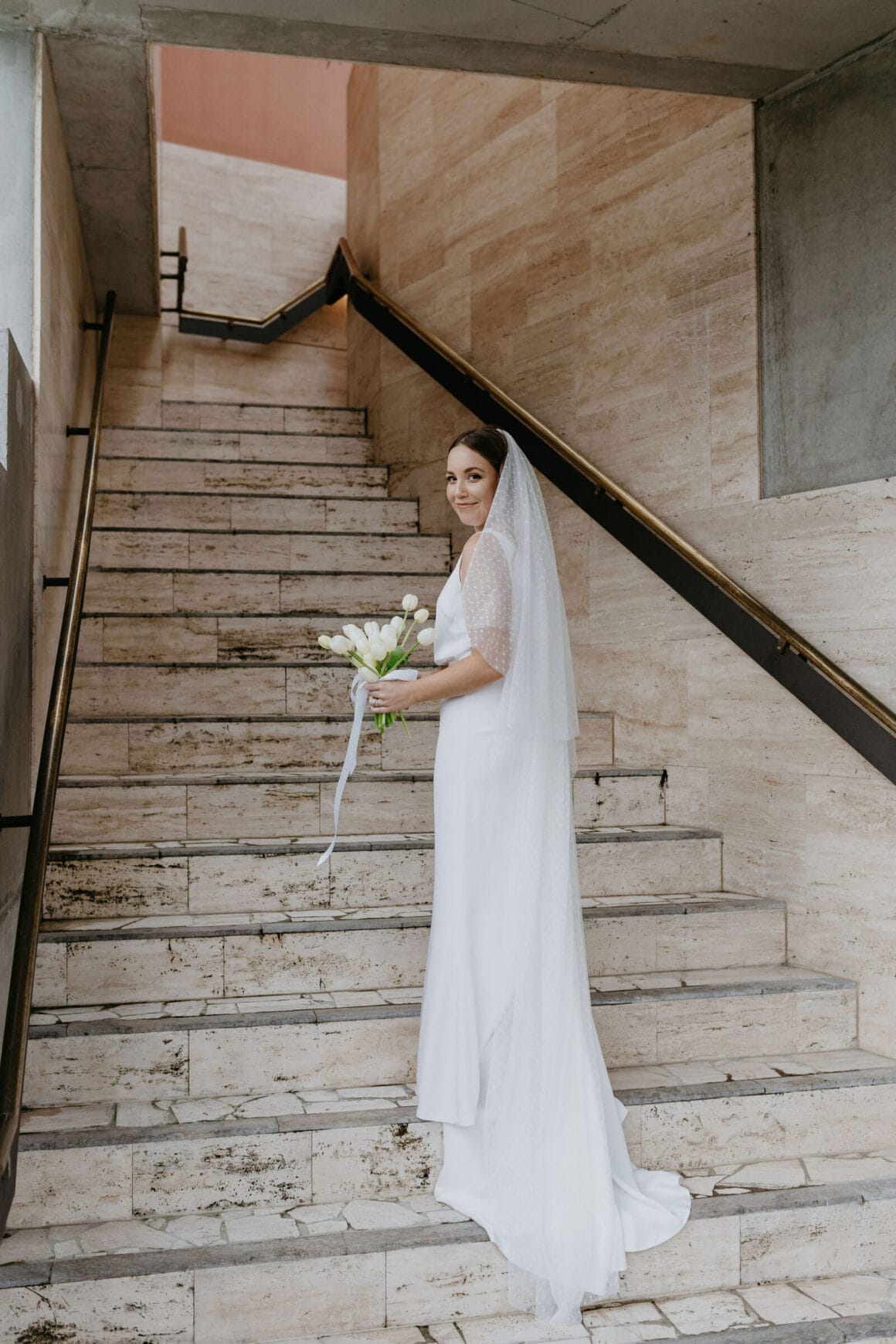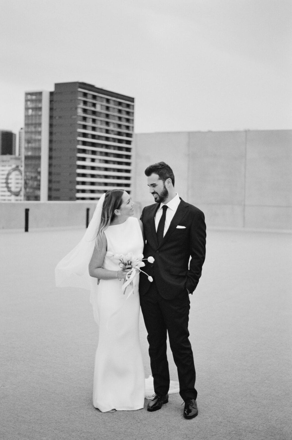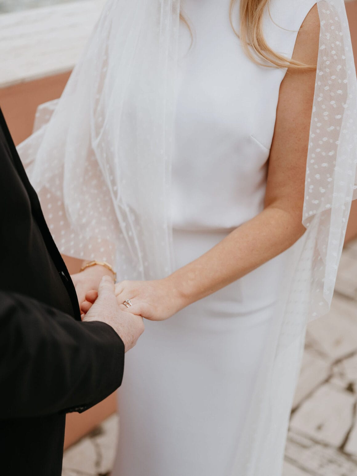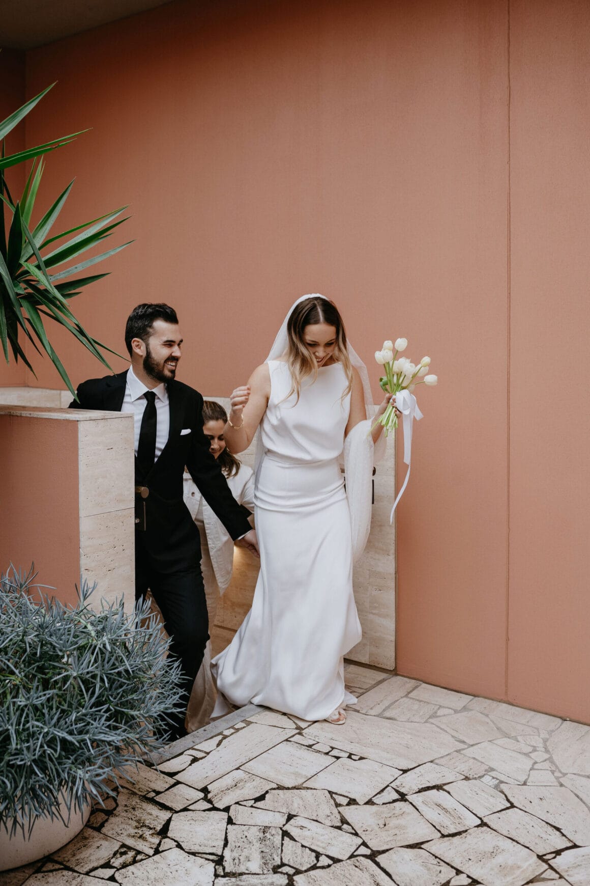 Don’t ask us to pick a favourite between Hayley’s two modern, minimalist bridal looks; it’s impossible. Meanwhile, the groom, looking equally chic, told us that M.J. Bale made getting dressed feel almost too easy.