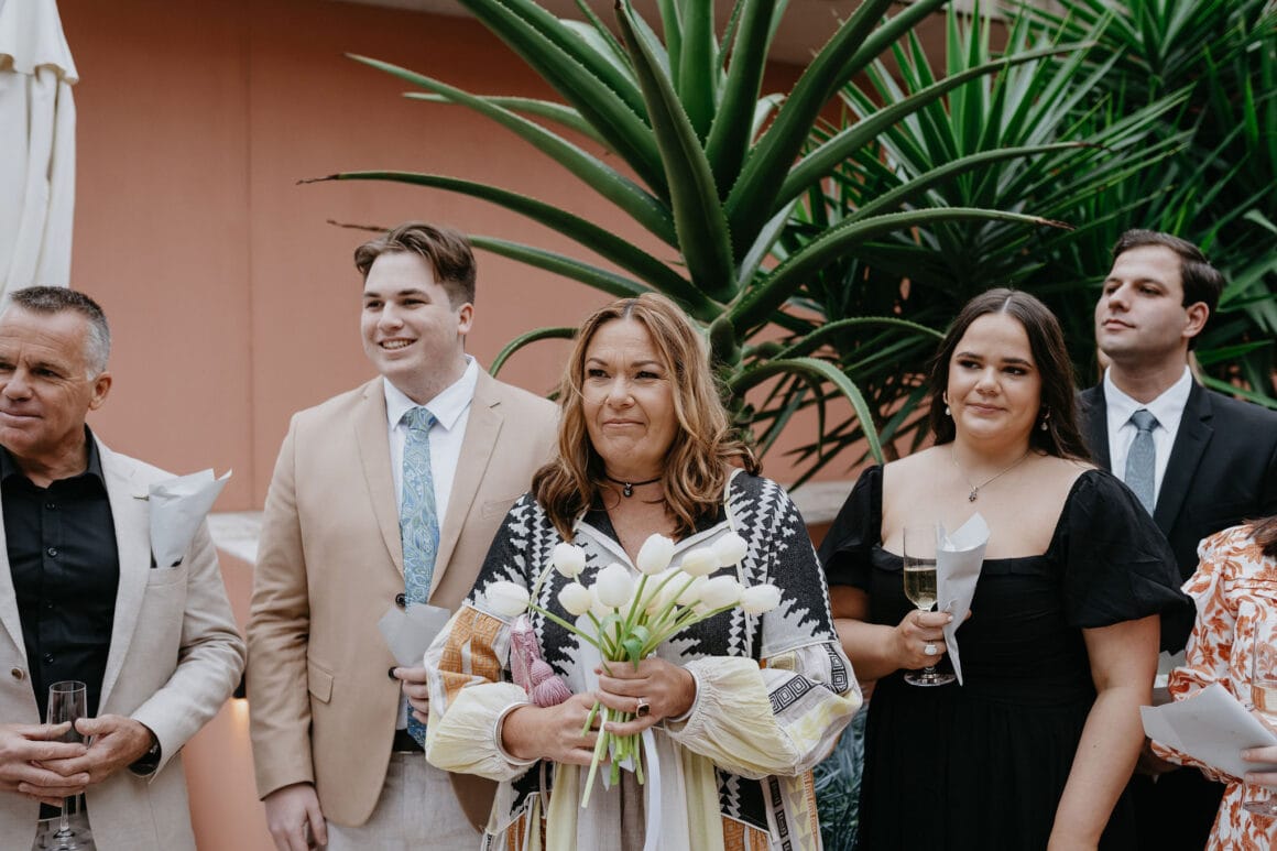 It may have been small in size, but this celebration had heart in spades, with the ceremony led by the fab Danielle of Your Story Celebrant. A petite guest list of 20 gathered at The Calile Hotel for the ceremony, before sitting down to a relaxed “dinner party with no strict agenda”.