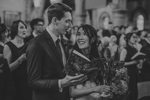 A design producer and a commercial lawyer who first met back in the day at uni, Indigo and Joe (first featured in Issue 17) had been friends for ages before they started properly dating. After getting engaged (thanks to Joe’s clever ploy, convincing his beloved that they’d be taking waltz classes…when really a shiny ring was in her near future) the couple spent a short six months planning their totally cool nuptials in Summer Hill.