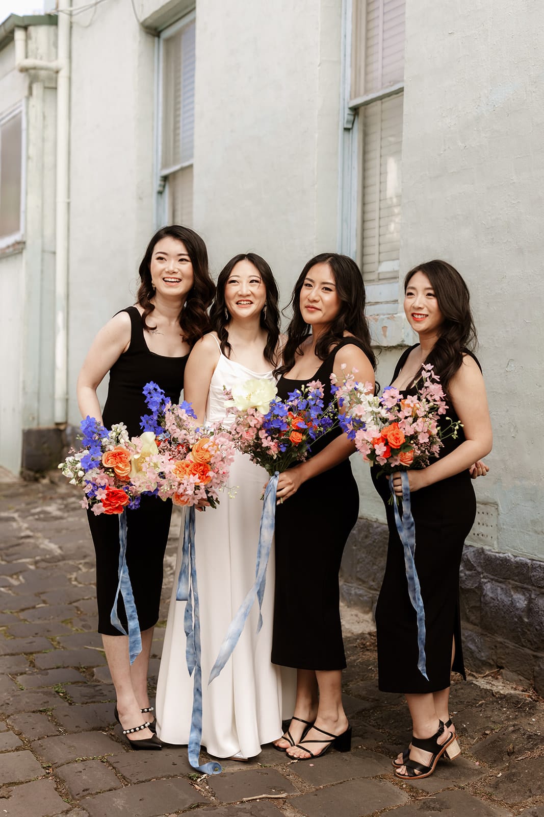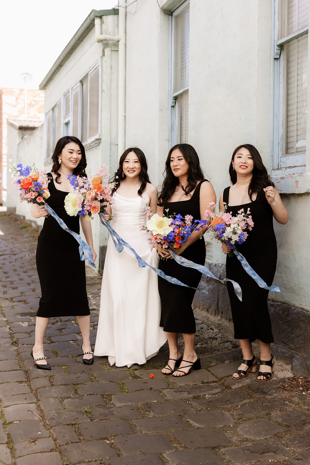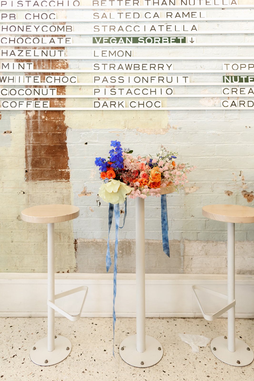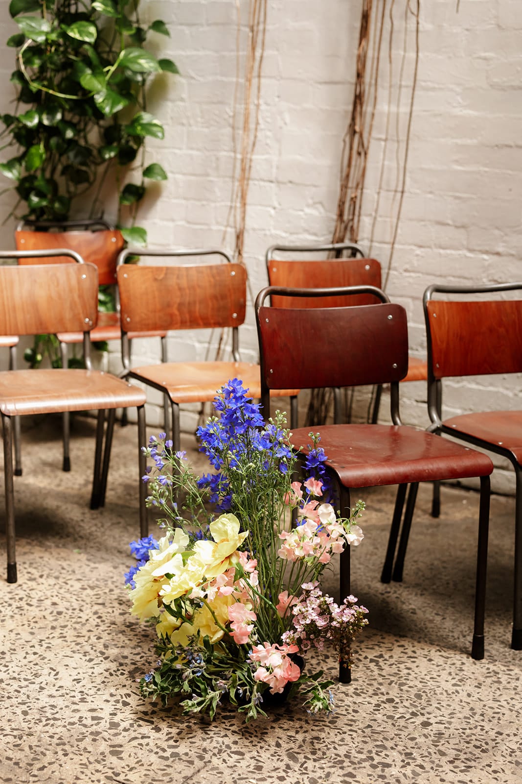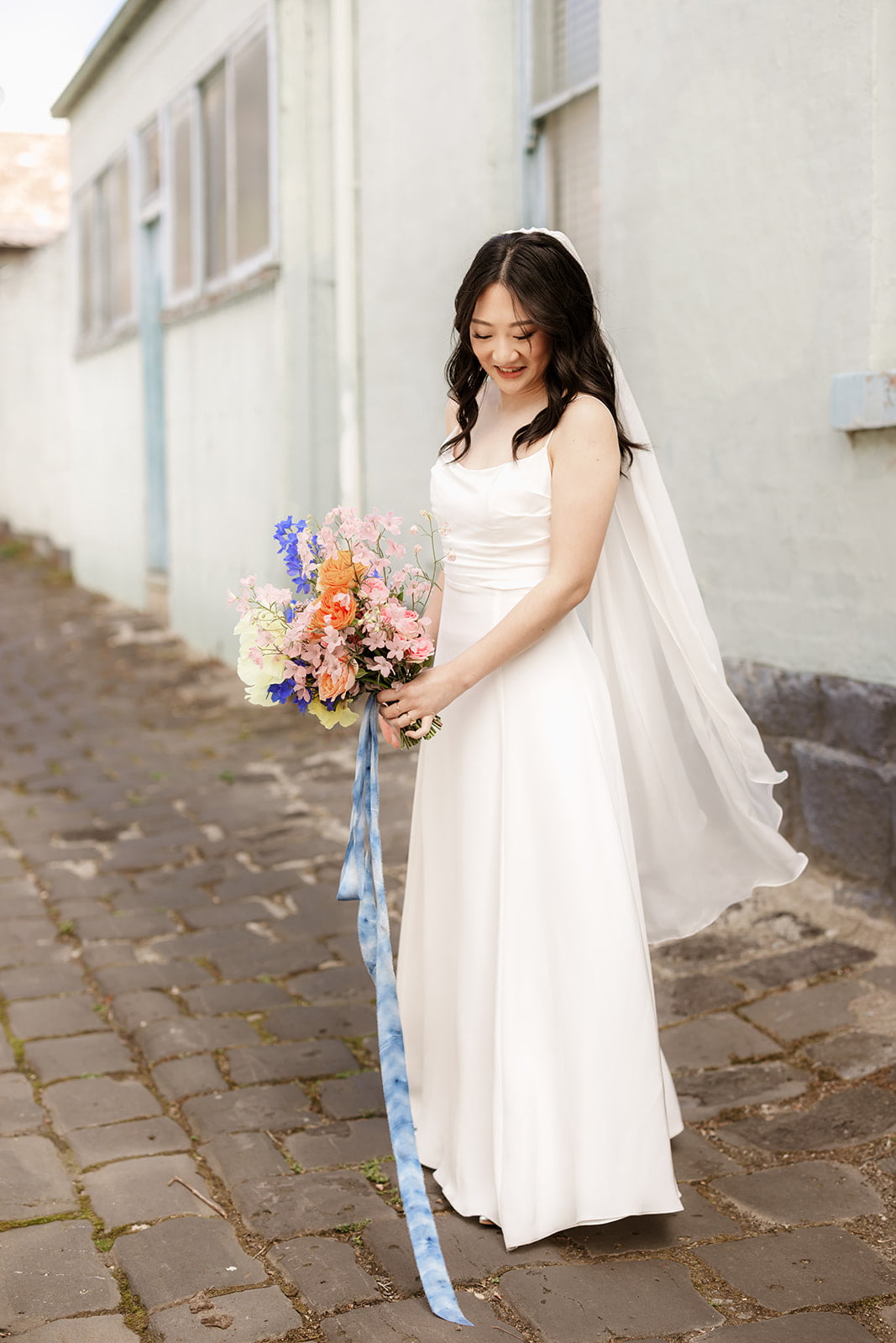 FAVE DETAILS “I loved the bouquets from Katie at Ripple Studio. The bouquet style was quite loose with lots of movement and colour and made for great props for the photos. Although we were on a budget, I did want to prioritise having added florals for a bit of colour. We came up with the brief of loose and airy, garden-style, still-life painting, and Katie absolutely delivered! ”
