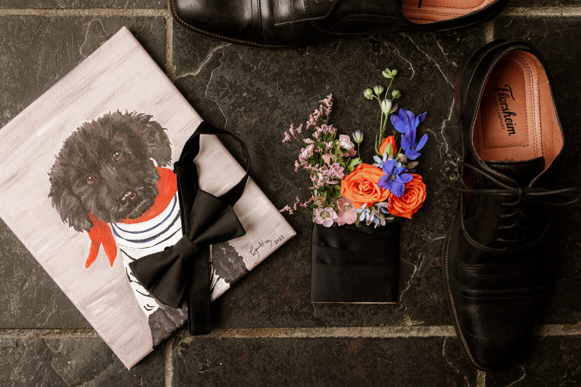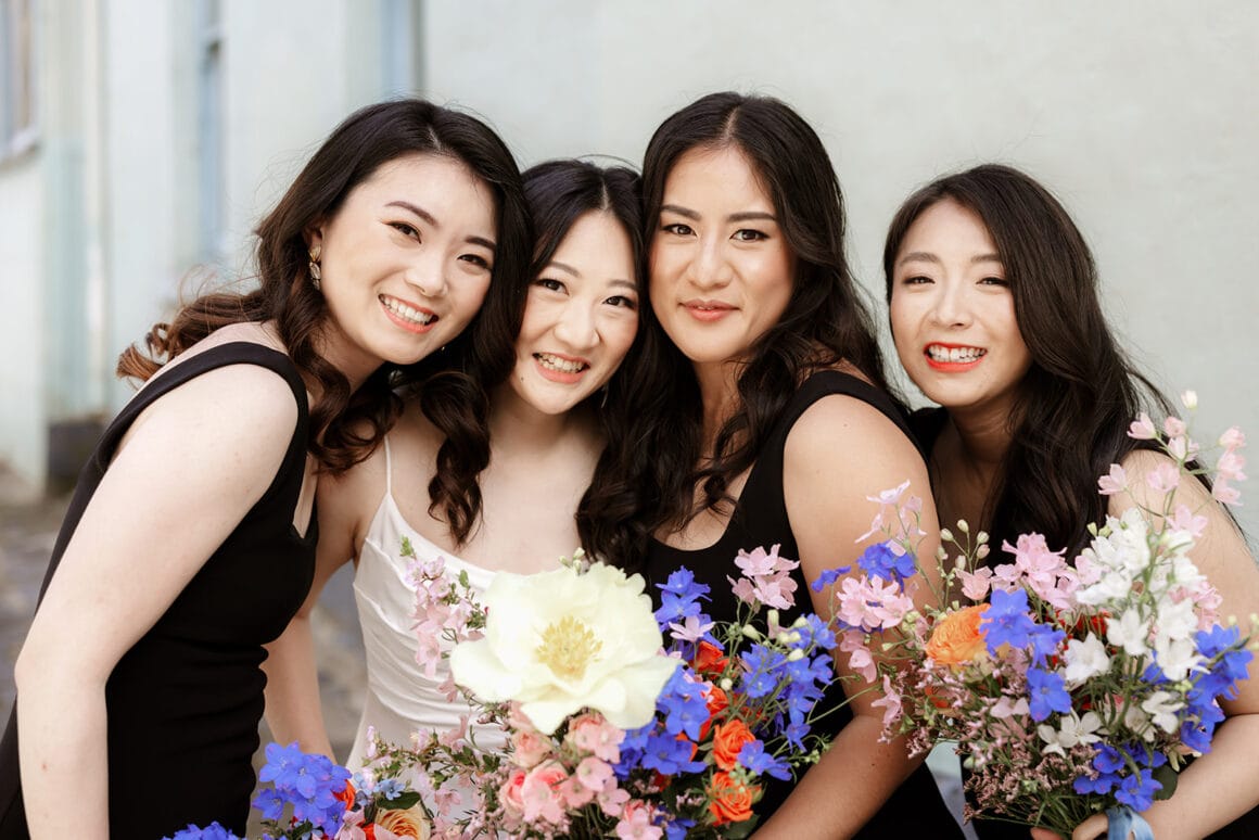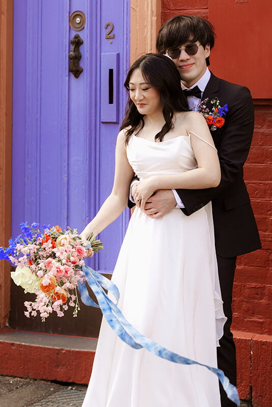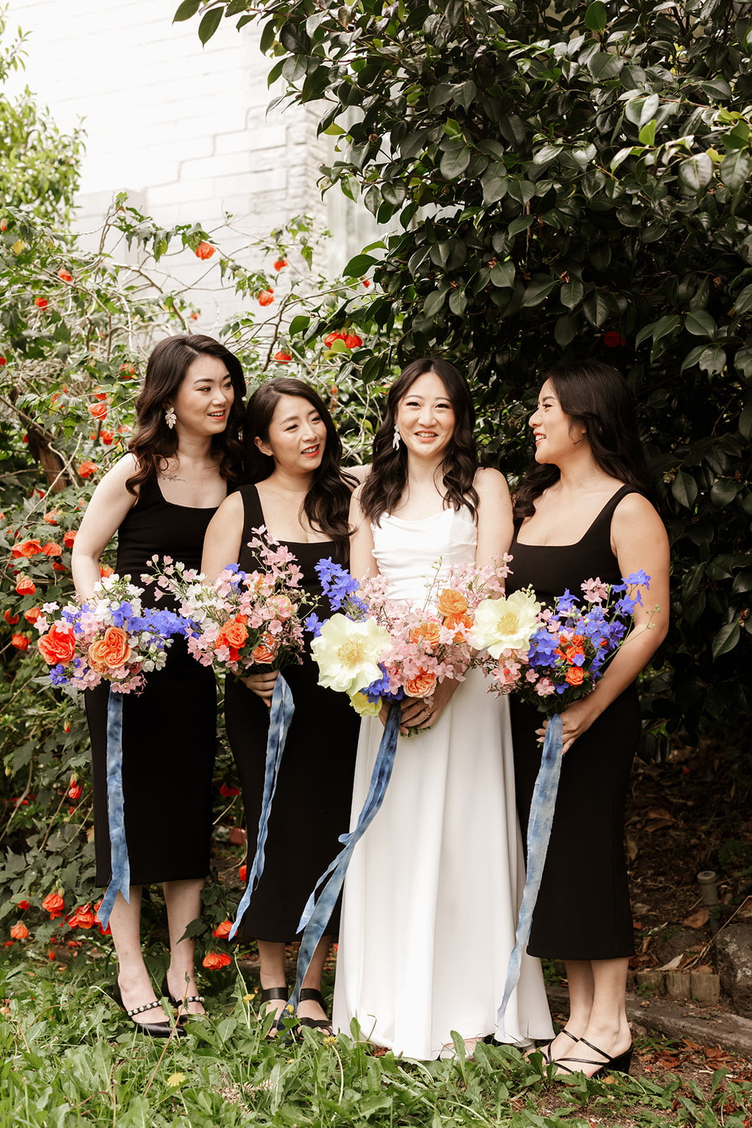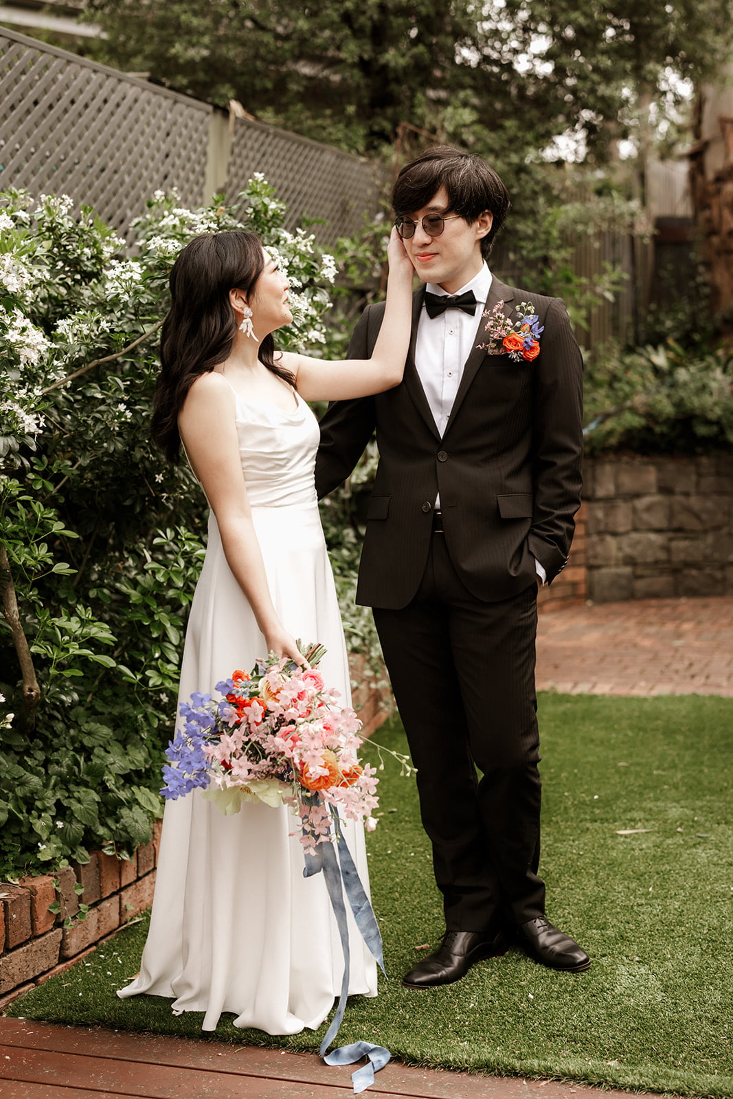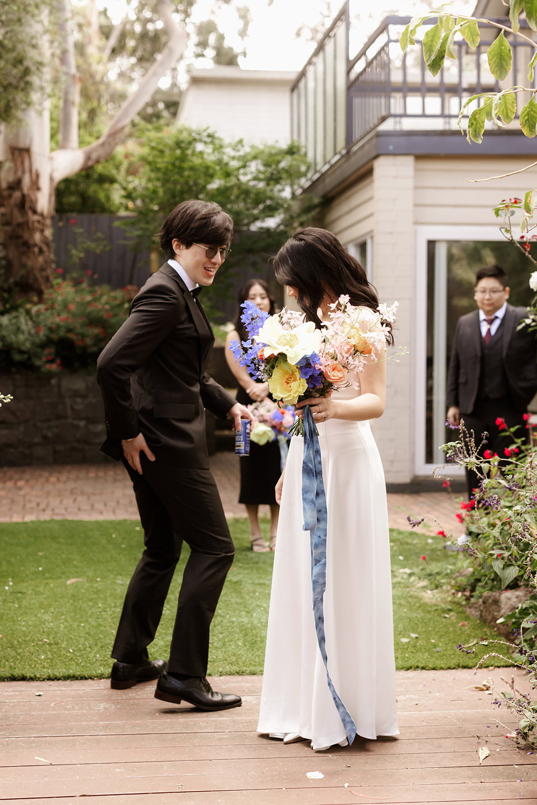 FAVE DETAILS “I loved the bouquets from Katie at Ripple Studio. The bouquet style was quite loose with lots of movement and colour and made for great props for the photos. Although we were on a budget, I did want to prioritise having added florals for a bit of colour. We came up with the brief of loose and airy, garden-style, still-life painting, and Katie absolutely delivered! ”