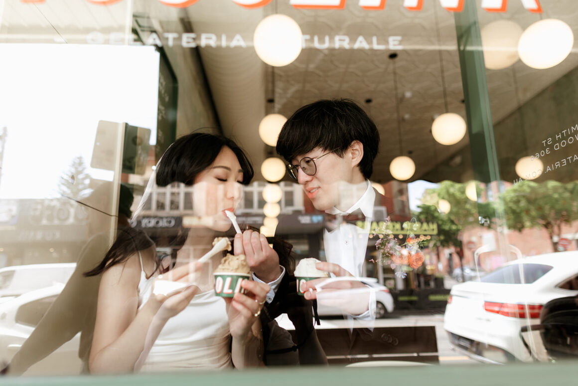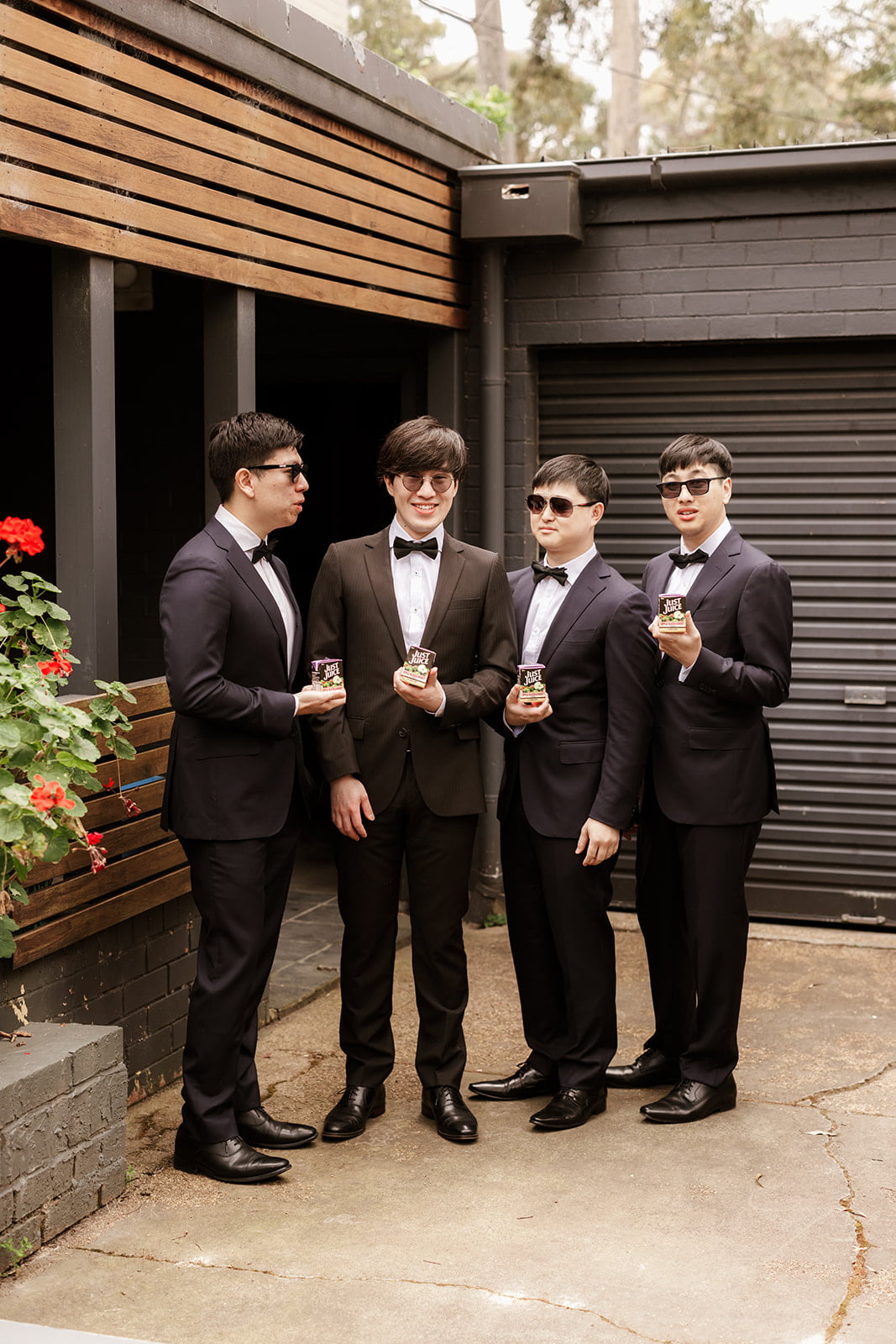 MEMORABLE MOMENTS “I had both my mum and dad walk me down the aisle, and it was really nice to have them both there with me while we were waiting for our cue. Jia and I also really liked that we took a break from the rest of the party to take golden hour photos with our photographer Nikki McCrone, who was awesome. It was lovely to have some quiet time together.”