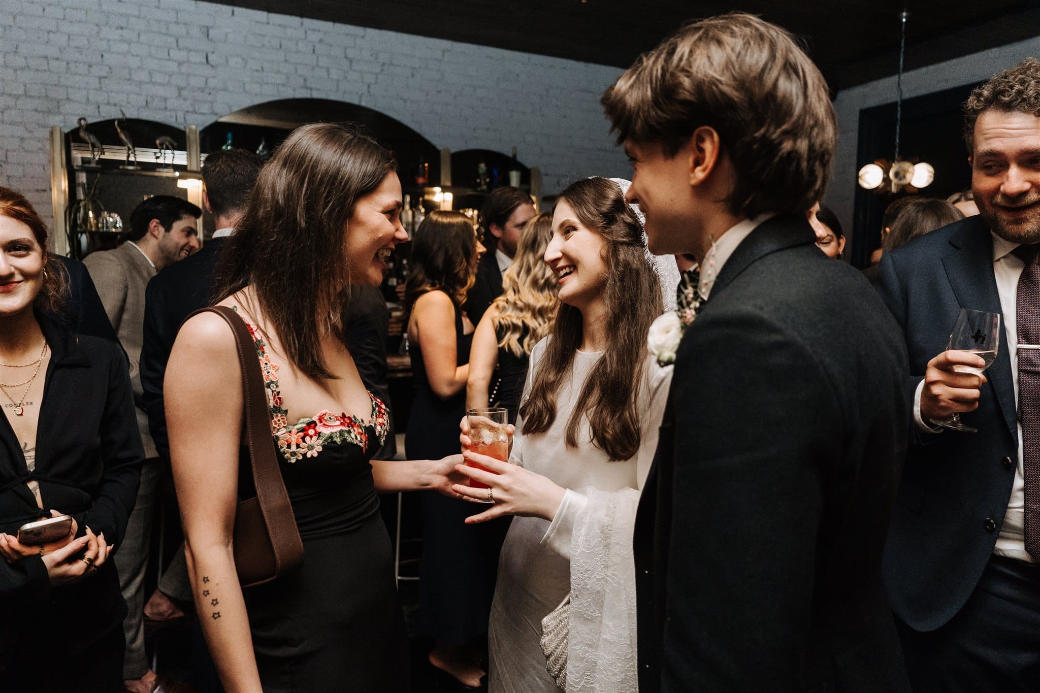 This bride (wearing vintage-inspired Silk Laundry) and groom (suited by InStitchu) chose to share their celebration with a small circle of immediate family and close friends, explaining that the intimate nature of the occasion was “a central pillar of the day, and it made celebrating especially fun.”