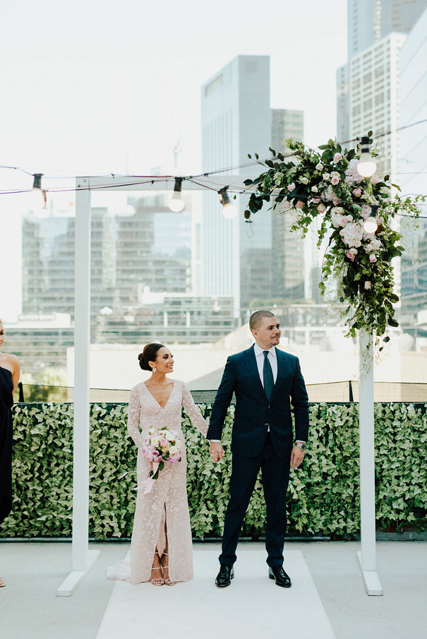 Jacinta and James’s Melbourne wedding is one for the history books. Rounding up some of  Victoria’s finest vendors (and commissioning one heck of a bridal gown along the way) these two threw caution to the wind and tradition out the window when it came time to create their roof top New Years Eve nuptials.