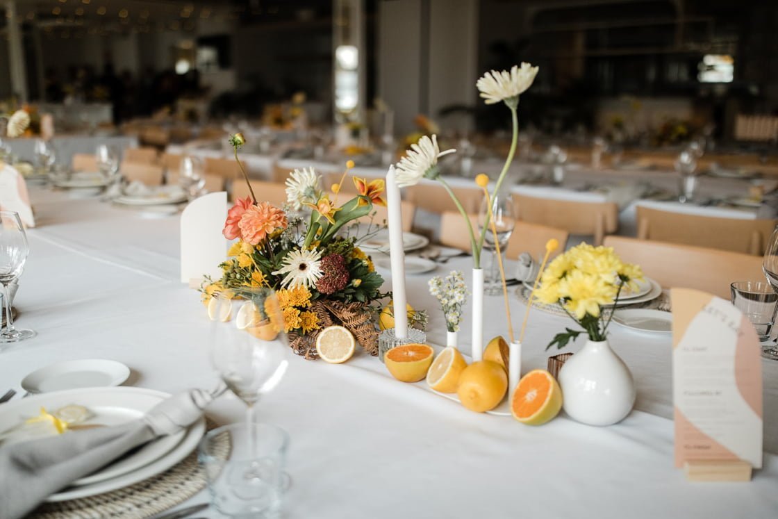 FAVE DETAILS “Definitely our cake [by Mudda Cake], it was bright and quirky, which was just how I wanted it. Also the flowers by A Beautiful Occasion – I loved our table centrepieces, they were exactly how I had imagined. I wanted to incorporate citrus into the styling as a fun twist.”