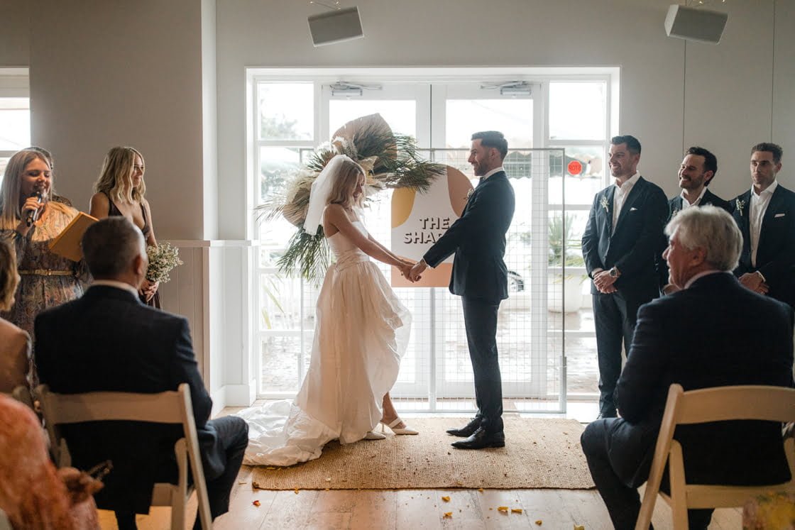 CONTRIBUTING VENDORS Photographer Third Wheelin’ Co. Stylist & Florist A Beautiful Occasion Stationery & Signage Friend Ceremony & Reception Shoal Bay Country Club Cake Mudda Cake Cake Topper 2doorsdowndesign Hire Items Exotic Lily Events Celebrant Kahlia Wilkin Rings Elias Designs Transport Blake’s Classic Wedding Cars THE BRIDE Gown Bowie Rae Veil Anza Bridal Shoes Pedro Shoes Accessories Reliquia Collective Hair Indie Mane Makeup MBL Bride Fragrance Gucci Bloom Bridesmaid dresses Bec and Bridge, Shona Joy Bridesmaid gifts By Nouck THE GROOM Suit M.J. Bale Bow tie Gucci Shoes Aquila Watch Tudor Black Bay Groomsmen suits M.J. Bale