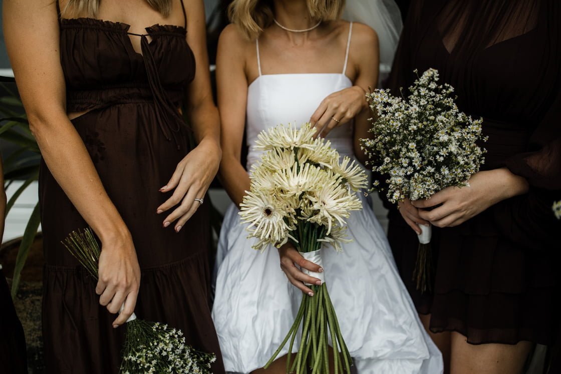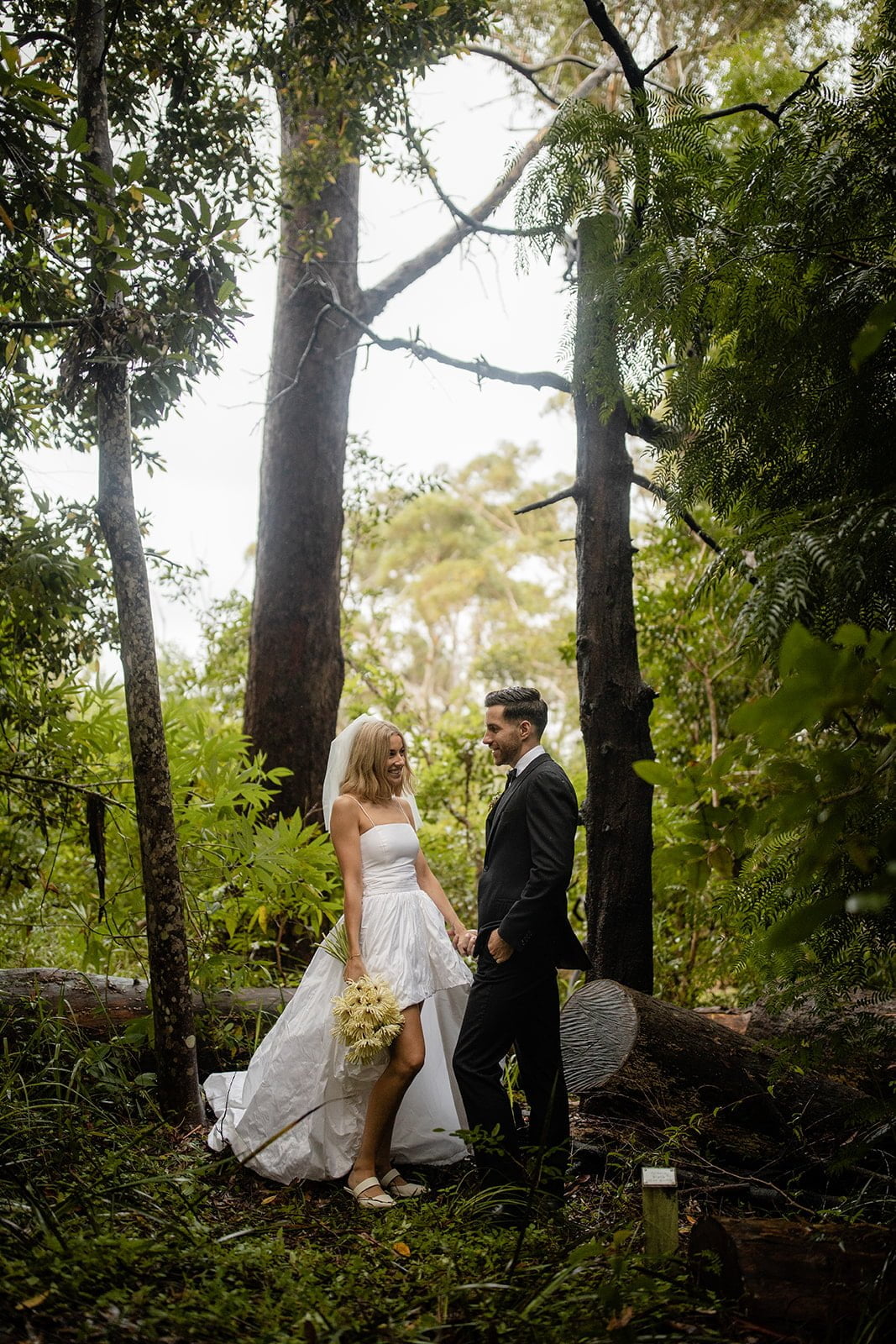 As every mid-pandemic, mid-la niña, 2021/2022 bride and groom knows, there are some things you just have to laugh at. “We had so many things go wrong, it became amusing,” says Jess of marrying Adam. “We kept spirits high by joking to each other, ‘Well there’s always Vegas.’ If we had had another issue and had to postpone again, our plan was actually to get married in Vegas – Elvis impersonator mandatory.”