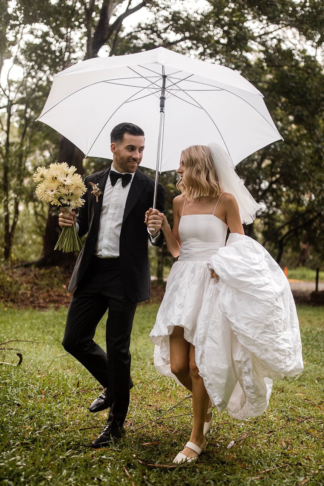 STANDOUT VENDORS “Our celebrant, Kahlia Wilkin, was incredible. She perfectly captured the essence of what we wanted –a fun and relaxed ceremony where people could cheer, laugh and get involved, and it wouldn’t be too serious (although there were still tears!). We wanted everyone in the room to feel like they were part of the ceremony and not just spectators and she achieved that and more. Also Alex, our photographer, of Third Wheelin Co. – poor guy had absolutely nothing to work with when it came to the weather and locations for shots but he made it work and the photos turned out amazing, despite him being completely drenched by the end of it.”