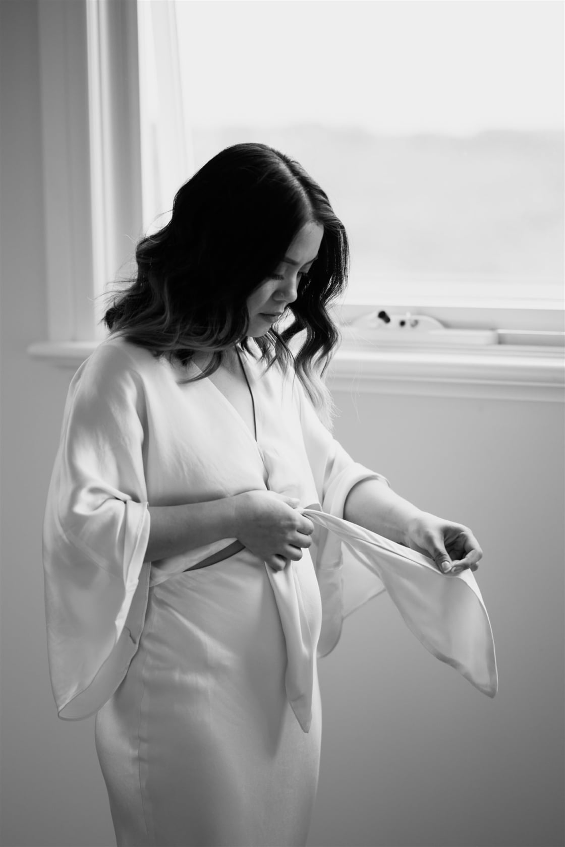 THE DRESS “My dress was actually a last-minute backup dress. I initially got a customised dress from We Are Mancini, which I was in love with and fit me perfectly. However, I fell pregnant in July and a few weeks before the wedding, my bump had decided to show itself and the dress no longer fit. So I scrambled to find another dress online, and came across the Shona Joy La Lune tie-front dress and bought it straightaway. It arrived a week before the wedding and it was perfect – and bump friendly!”