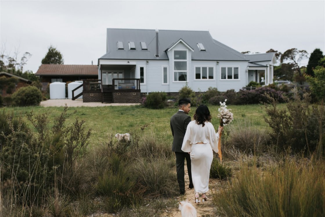 FAVE DETAILS “Aside from helping photograph our day, Nastia created a beautiful bouquet arrangement which featured flannel flowers and a matching boutonnière. Our ceremony location had also been blooming with flannel flowers after damage from the recent bushfires, and we thought this was an amazing detail and metaphor for us starting our new life together. Coincidentally, Beau was also sporting a custom-made flannel suit.”