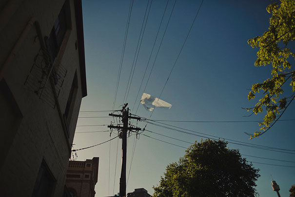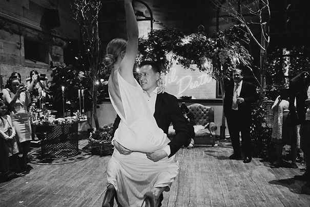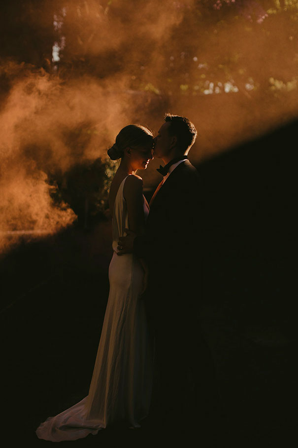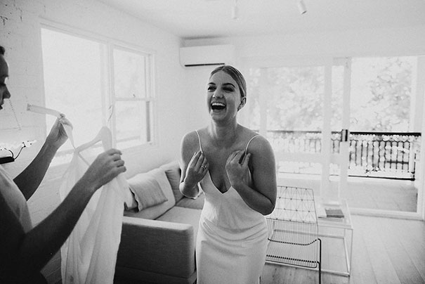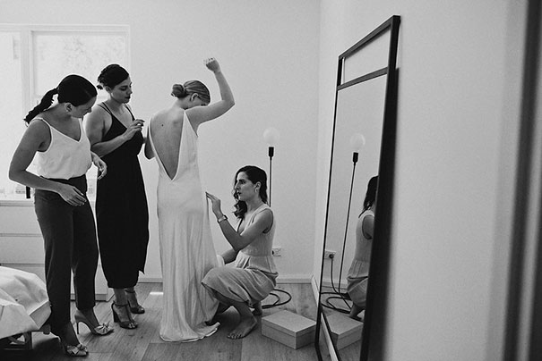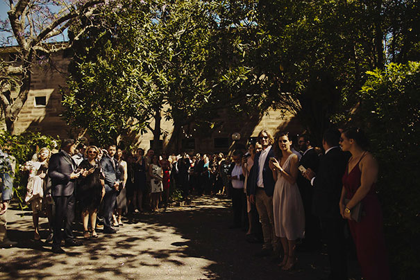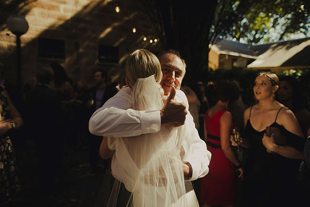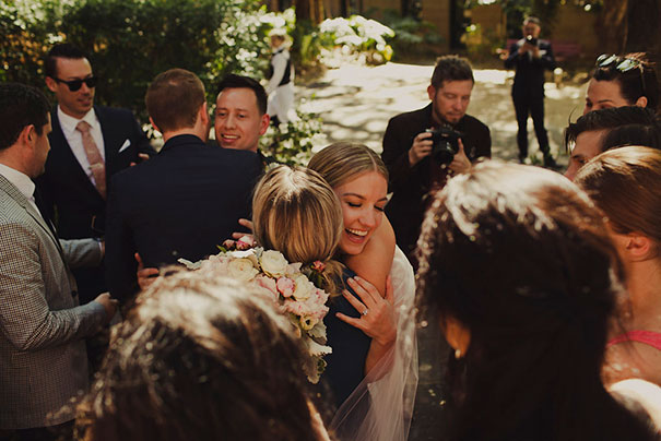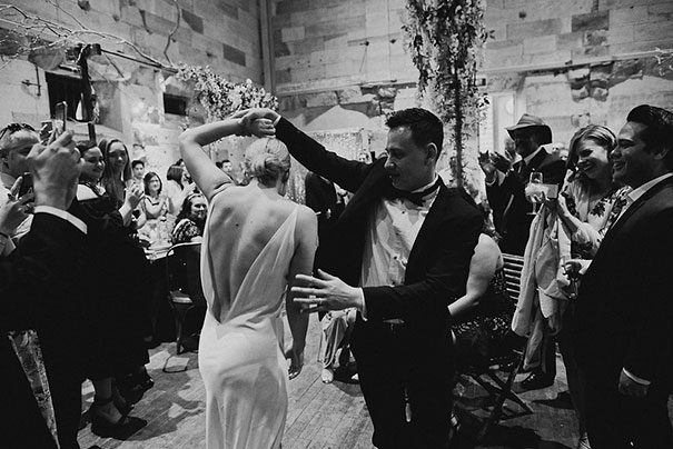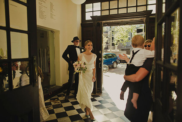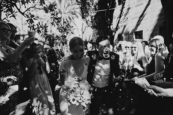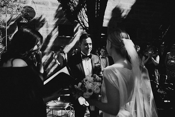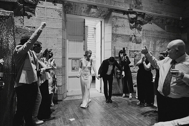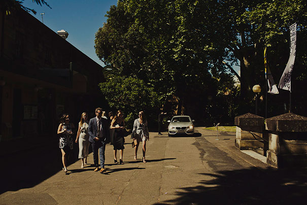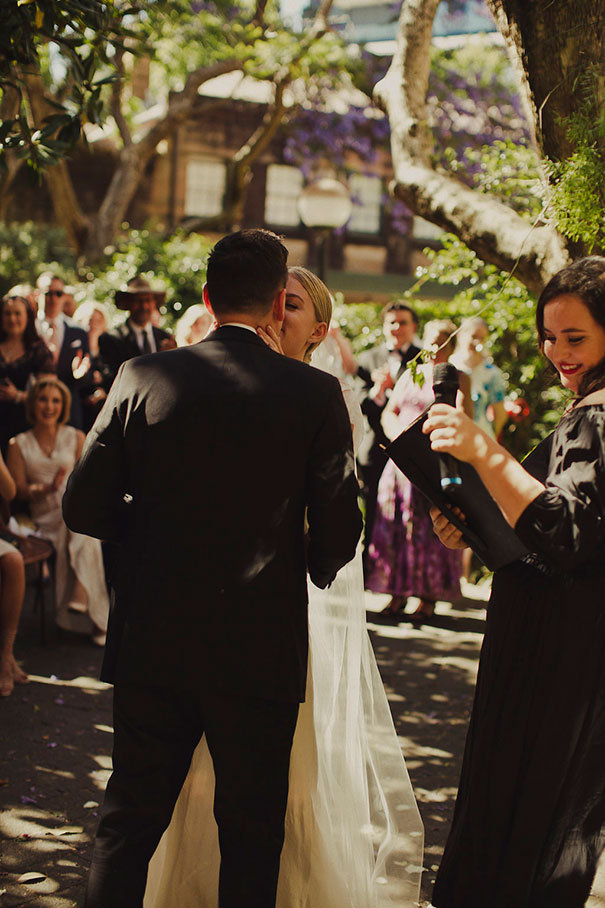 A no frills day filled with fun times and described as £classy, romantic and a little quirky—, it’s not surprising that this Sydney wedding was overflowing with amazing memories – like their runaway veil moment captured by Dan O’Day Photography. £During our photos we took to the city streets for some shots. There was a fair bit of wind that day and just as Dan was taking a shot of us, my veil flew straight up and landed in the power lines! We were on such a high from just being married we couldn’t stop laughing. It was still quite windy so we thought we’d hang around to see if it would fall back down. After untangling itself and landing in another power line, it finally fell free and Des leaped up and caught it. We had people cheering for us from the balconies and cars which had stopped in the street.—