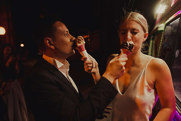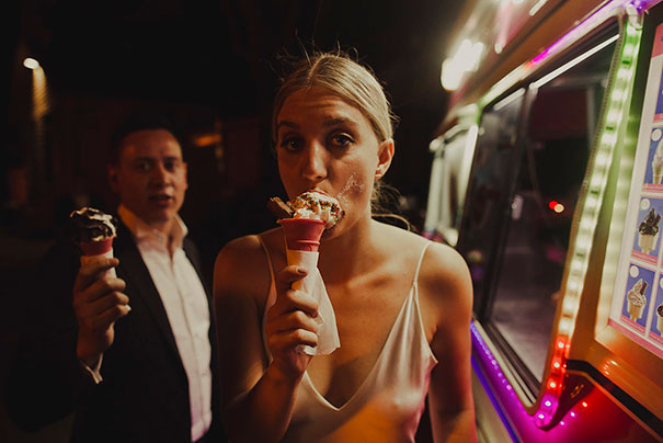 As far as other favourite details and moments go, there were quite a few according to these newlyweds, like their Sammy & Lola Til Death’ neon sign, the retro ice cream van and, for Jess, seeing her husband to-be as she walked down the aisle towards him. £I had a bit of a walk and it wasn’t until I turned a bend towards the end that I saw him. Des isn’t a crier at all – in the 12 years we’ve been together it’s been a very rare sight. But I saw him well up just a little bit – and that was just enough for me. It was a special moment I’ll never forget.—
