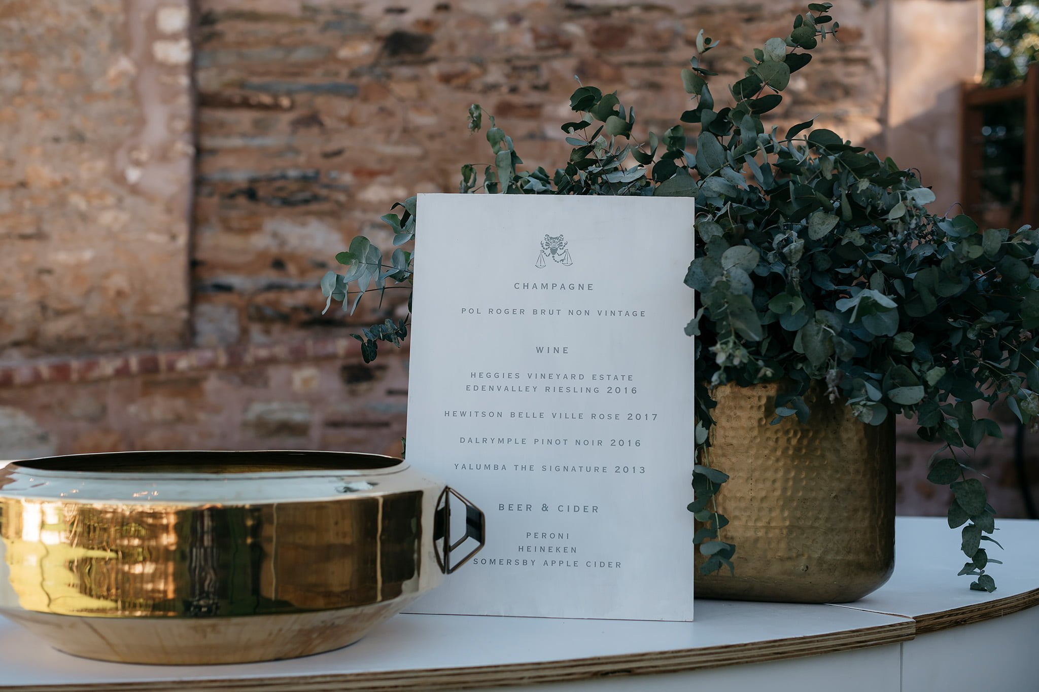 CONTRIBUTING VENDORS Photographer Katie Harmsworth Cinematographer Kane Chenoweth Event Planner, Stylist & Stationary & Lighting One Rundle Trading Co. & Hygge Studio Florist Poppies Flowers Ceremony & Reception Kingsford Homestead Catering Owen Andrews Catering Cake Say Cheese via The Smelly Cheese Shop Marquee White Marquee Event Hire & JAKS Hire and Events Furniture Lily & Bramwell Band B Sharps Rings Channings Transport Greenock Creek Charter Alcohol Yalumba & Negociants Australia BRIDE Bridal Gown & Veil Paolo Sebastian Shoes Valentino Earrings Dior Bracelet apm Monaco Pyjamas Peter Alexander Hair Belissimo Hair Bridesmaid Dresses Tim O’Connor Bridesmaid Shoes ASOS Bridesmaid Gifts Mimco Earrings GROOM Suit P Johnson Bow Tie Hugo Boss Shoes R.M. Williams Groomsmen Suits Suit Shop