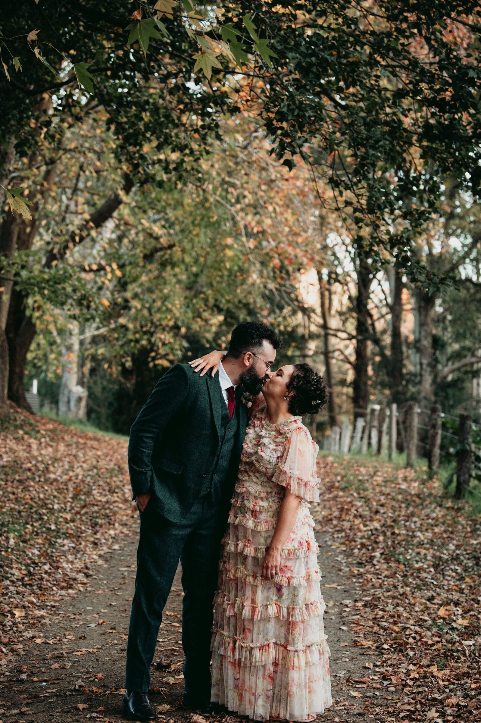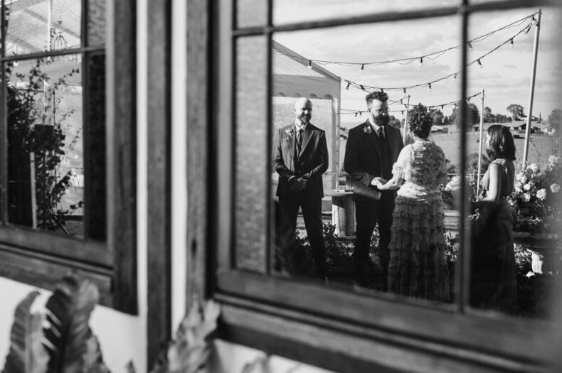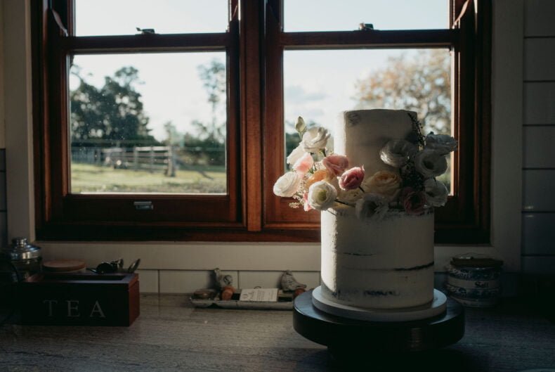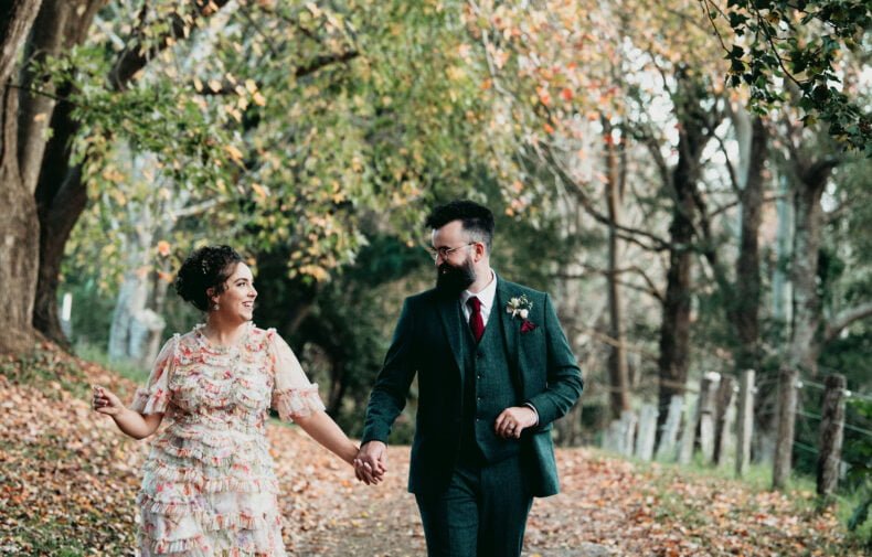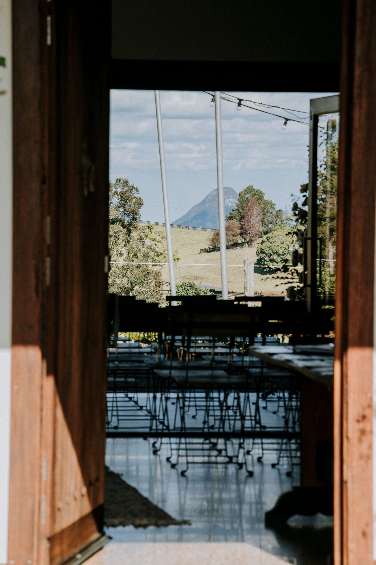 While visiting Jess’s mum’s Maleny property, Lew surprised his bride-to-be by getting down on one knee as they rang in the new year. The sentimental spot would become the location where they tied the knot. Think lush green hinterland hills, stained-glass windows, horses and a dress fit for a princess. The cosy cottage-core vibes were something straight out of a storybook.