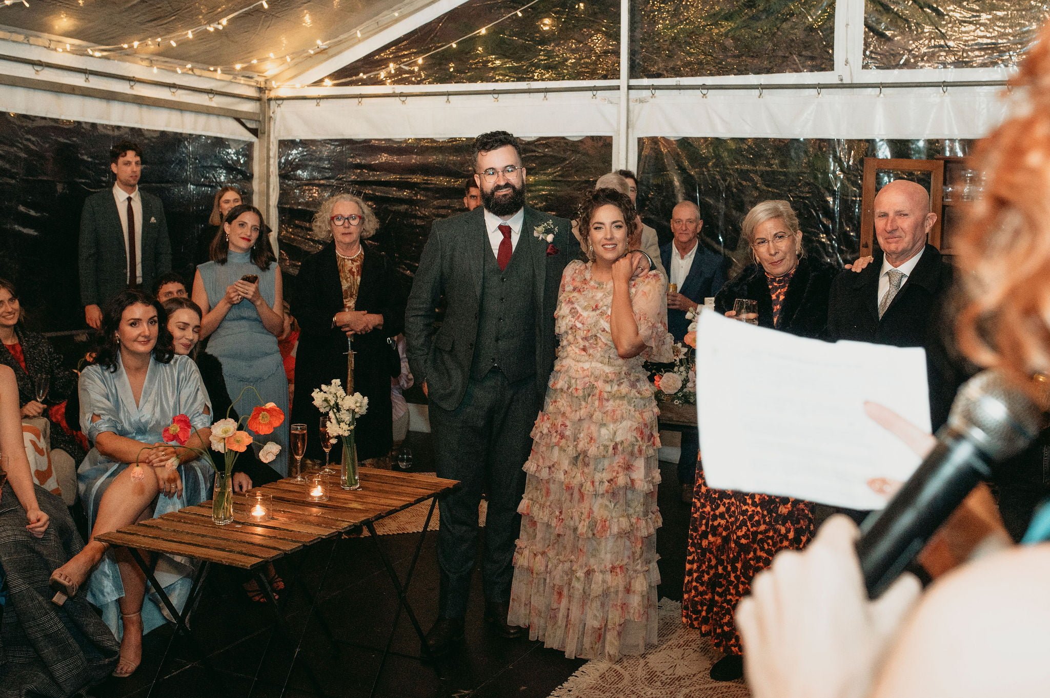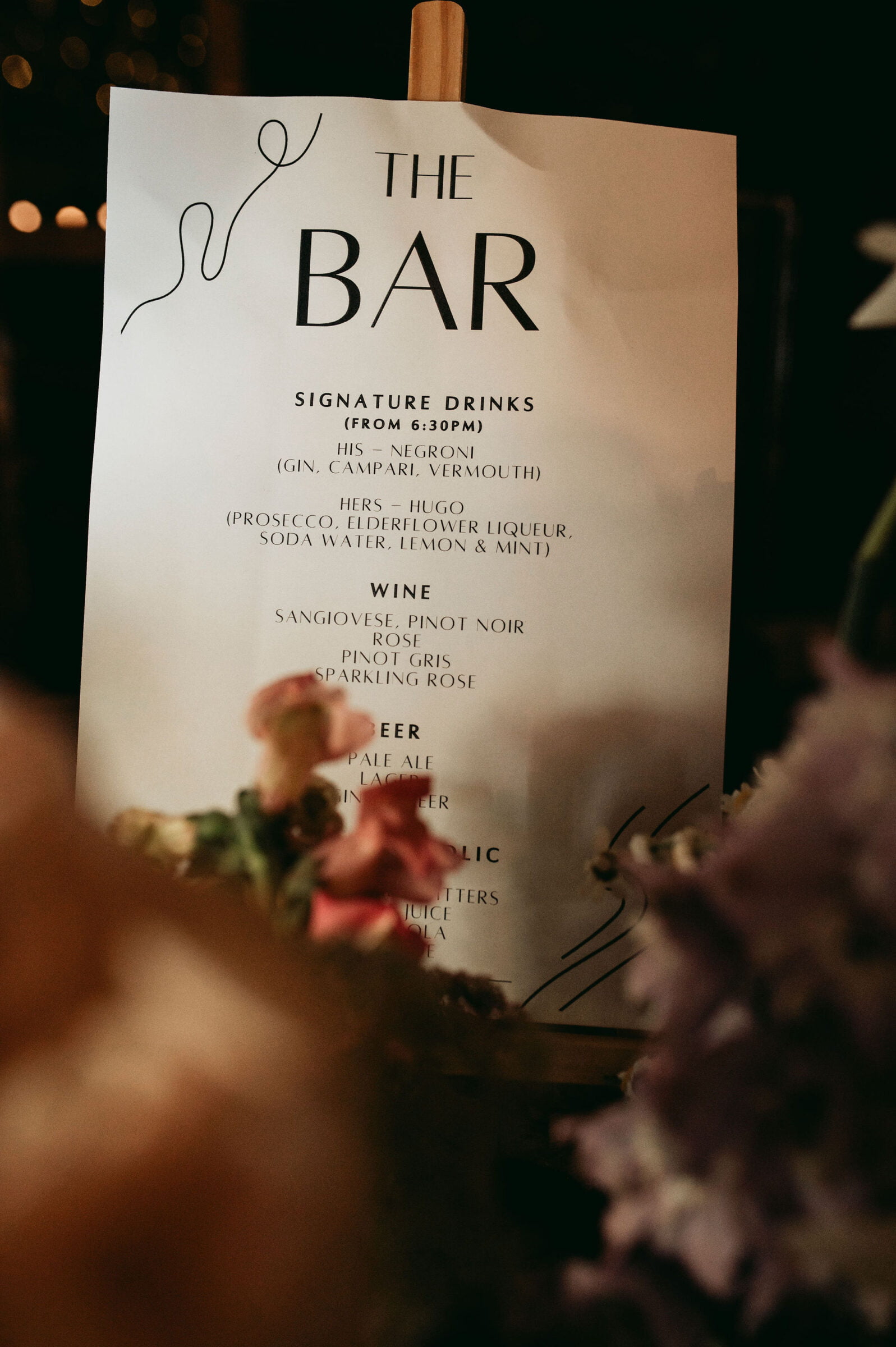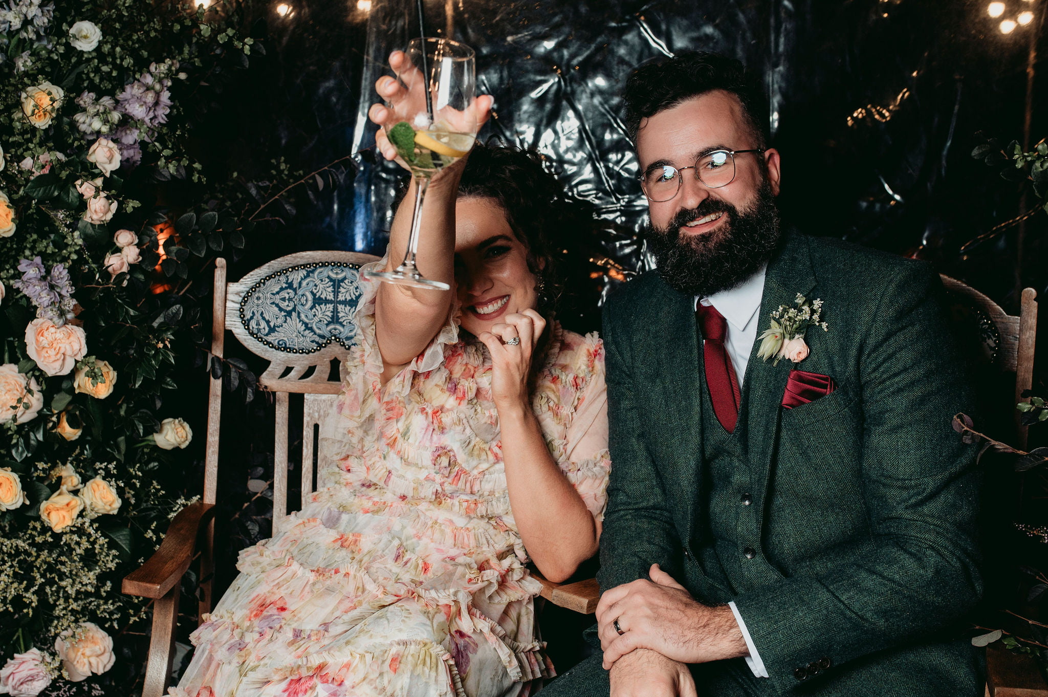 THE VIBE “The theme was a festive/overgrown cottage garden/loved-up party. It was incredibly important to us that we had family and friends who we loved and wanted to celebrate with (of course) but no-one who we felt we were forced to invite. Everyone there was very intentional, and we will always look back and be incredibly thankful to all who attended. Great food, drinks and music were an absolute must for us, as well as having different areas for different vibes, for example, a fun games area, cosy couches to settle into, tables and chairs to sit and eat at as well as a fun dance floor for party times!”