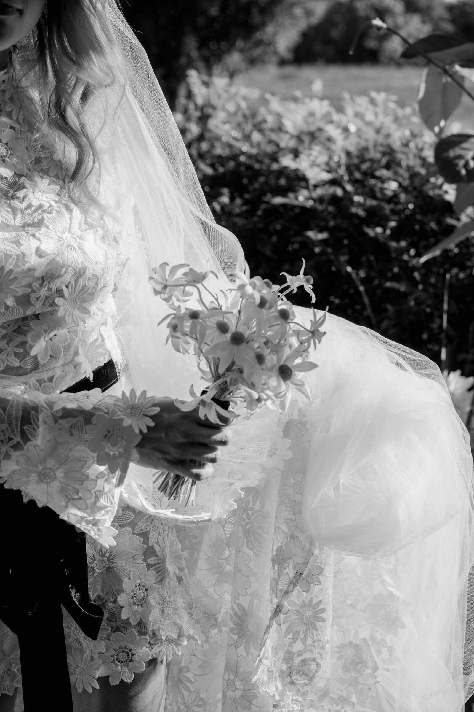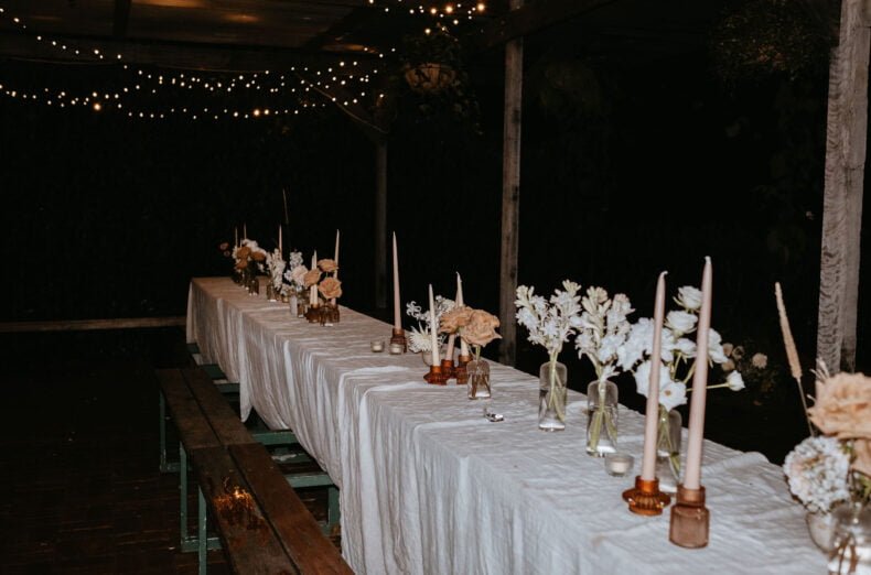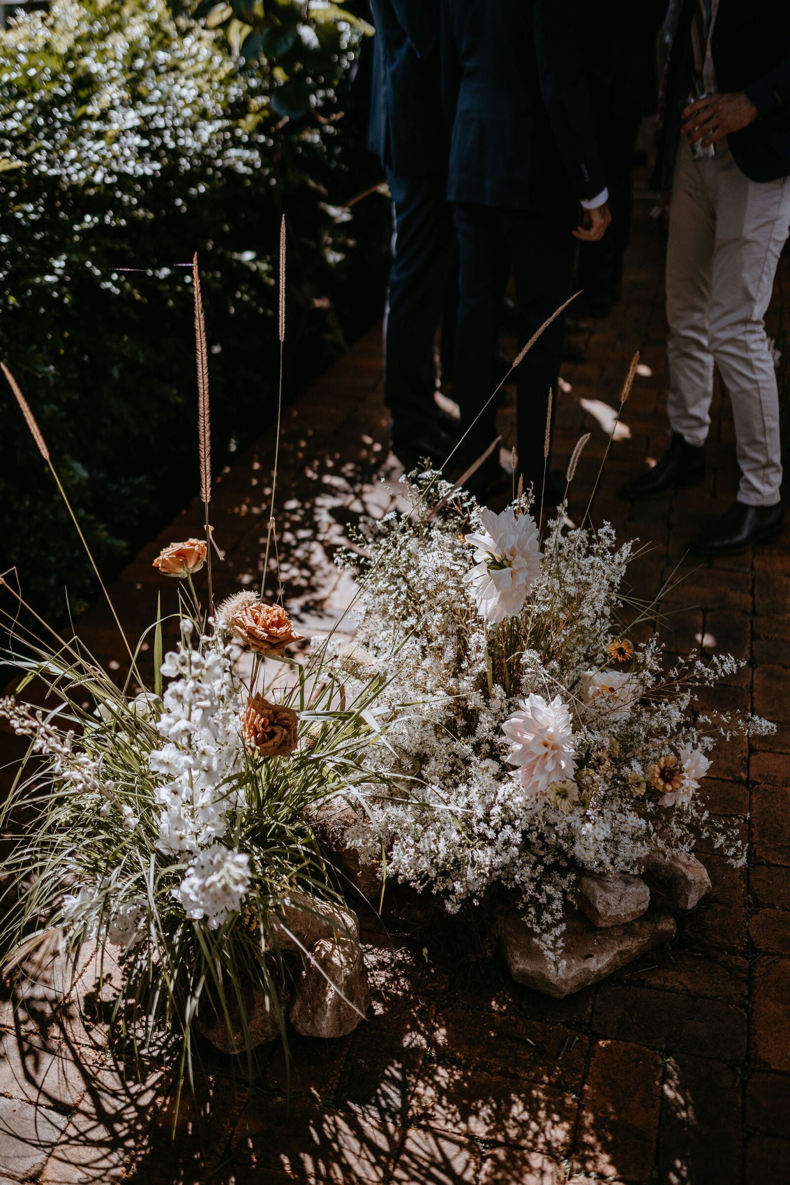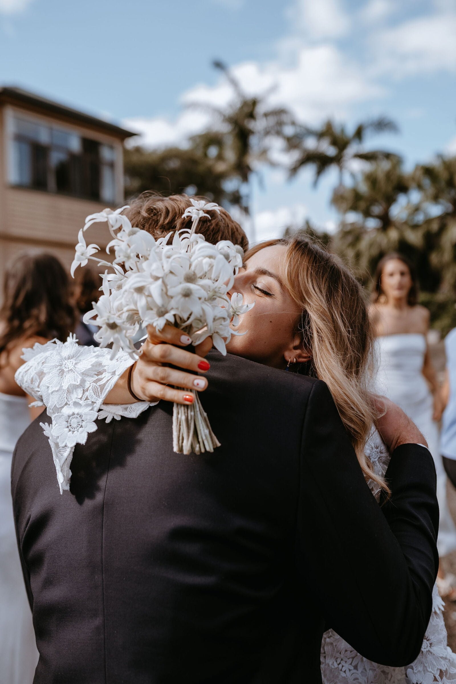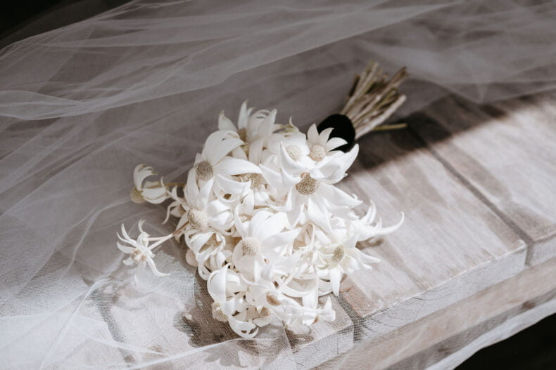 FAVE DETAILS “The speeches – all of them! They were just so special. All of the tears, the laughter and the big warm embraces at the close of each speech. And the flowers! My sister, Em, of FLWR Studio did the flowers and they were so beautiful. I didn’t want anything that would be too time consuming or labor intensive for her as I wanted to spend max time with her. She pulled together my absolute dream of wild grasses with cafe au lait dahlias, everlasting daisies and my favourite – flannel flowers!”